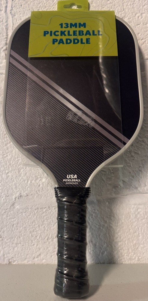 The 13mm Pickleball Paddle in Black/Gray Stripe offers a sleek and modern design for players of the sport. With a standard thickness of 13mm, this paddle provides a balance of power and control for a competitive game. The black and gray stripe design adds a stylish touch to the overall look of the paddle, making it both functional and visually appealing on the court.