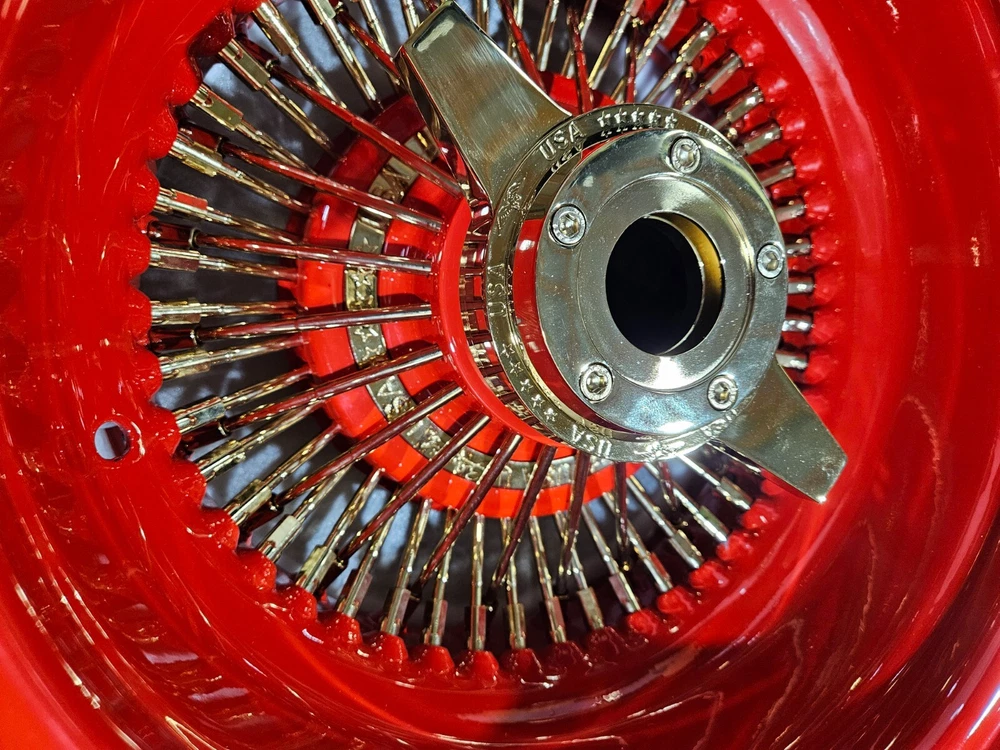 Welcome to Wheel Parts King. New Set of 4 wheels, BRIGHT red with gold spokes and knockoff 4 adapters with 5x5, 5x4.75 and 5x4.5 lug pattern 1 lead hammer The item shown in pictures is the exact item you are purchasing. Please add us to your favorites to see all of our great products that we will be adding. Thank you