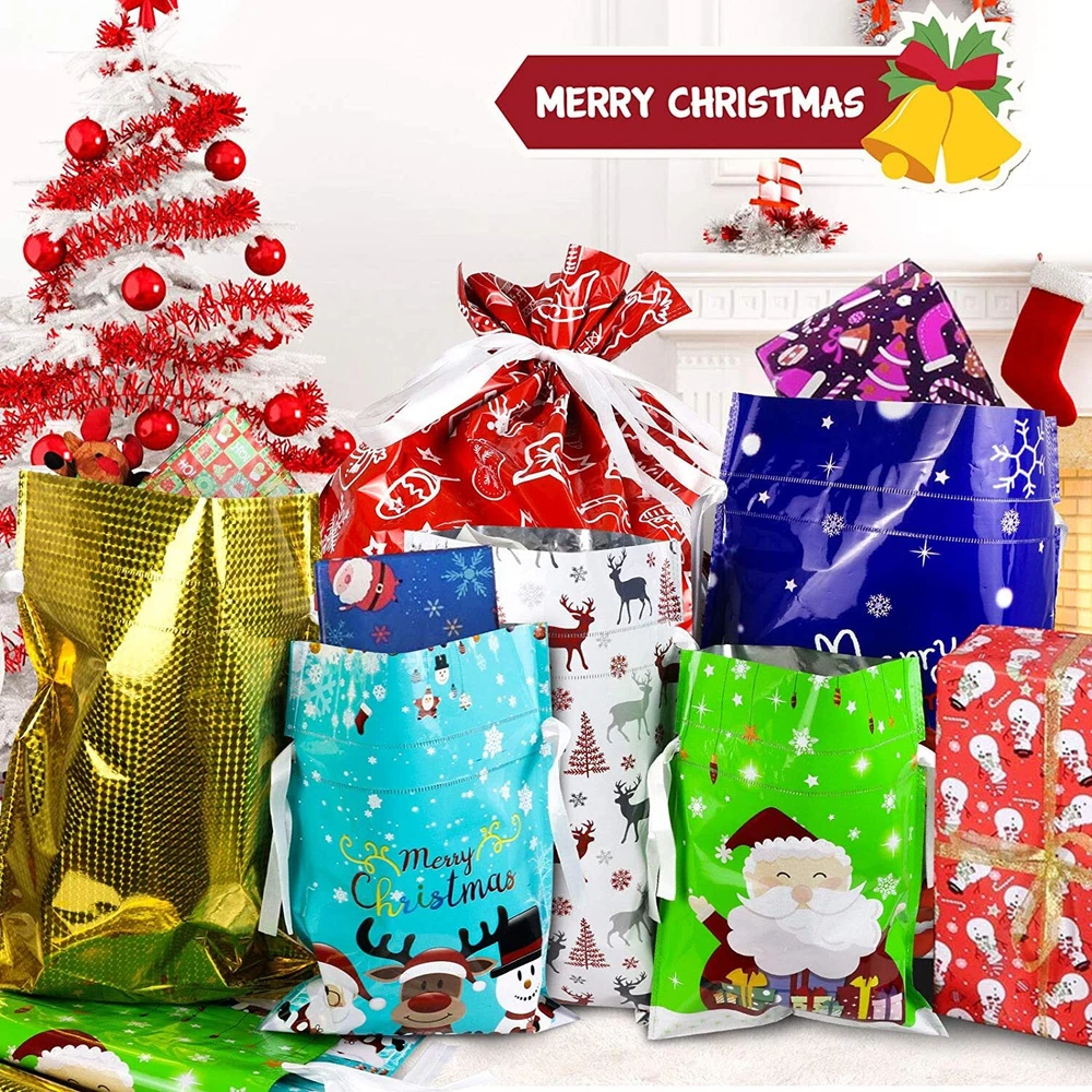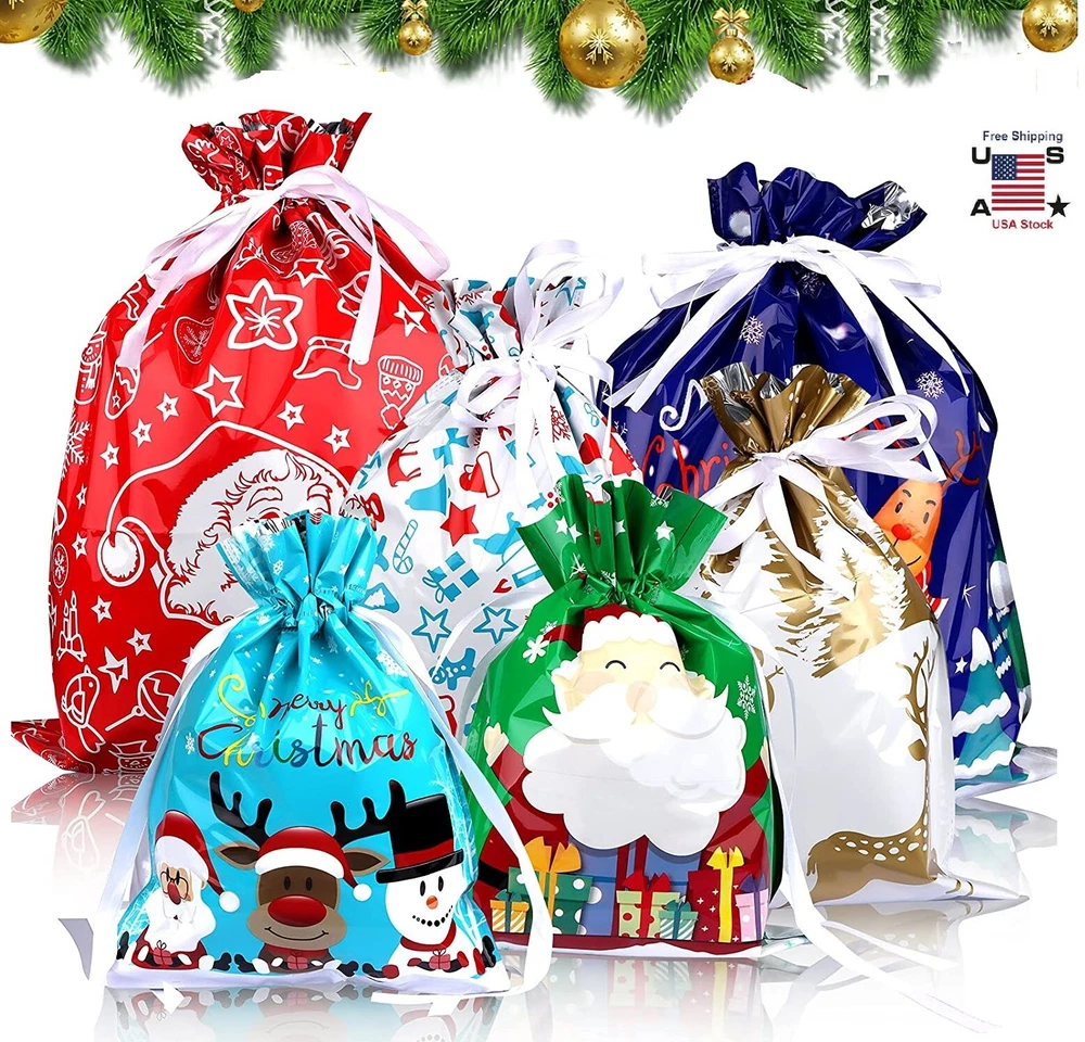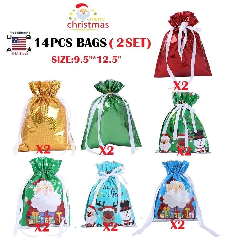 14× Christmas Big Drawstring Gift Bags Set Big 12.5" Xmas Wrapping Candy Bags US