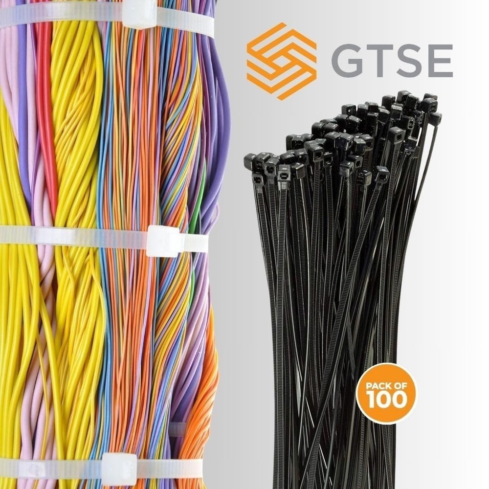 What's in the package? You'll receive 100 durable, White/clear nylon zip ties, which can be used indoors and outdoors. Item specifics Dimensions (length x width): 14" x 0.19" Material: Durable and UV-resistant nylon polyamide 6/6 Color: Black Active working temperature: -40°F to +185°F Flammability rating: UL 94 class V2 Dielectric strength: 50,000 volts/mm More about this product Our 14" x 0.19" zip ties can be used for all sorts of practical projects, whether it's a quick and simple fix in the home or garden, or an extensive and time-sensitive commercial project that demands an effective solution, fast! PACKAGE CONTAINS: 100 long, UV resistant nylon zip ties SIZE: 14" x 0.19" (50lb Strength) COLOR: Black BUILT TO LAST: Made of industrial strength nylon 6/6, zip ties are able to withstand even the toughest weather conditions (working temperature -40°F to +185°F). Each zip tie features a durable self-locking mechanism which doesn't falter over time. LIMITLESS APPLICATIONS: Perfect for home DIY, commercial purposes, cable management and gardening. Our zip ties are proudly used by households, contractors and industry all over the world!