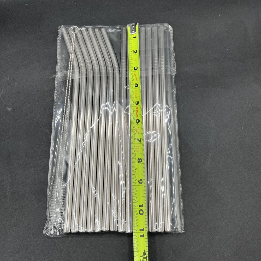 14 Pack Reusable Stainless Steel Metal Drinking Straws For Tumbler 11”