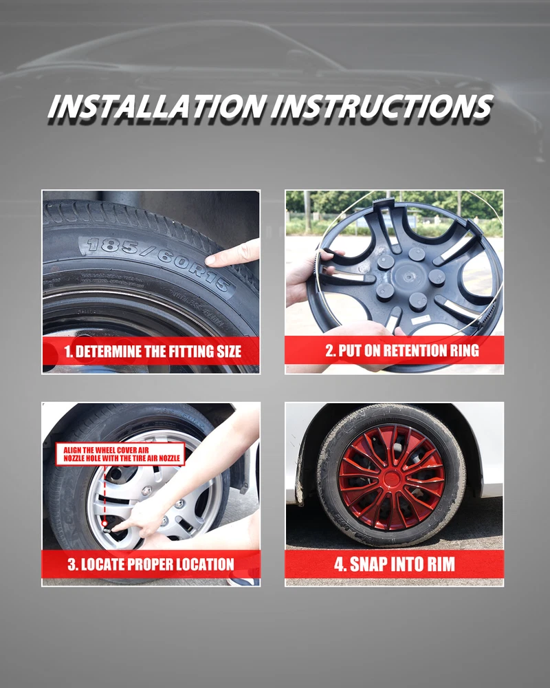 Home Payment Shipping Return Policy About Us Contact Us Feedback Title Other Car Refrigerator Front Bumper Rear Bumper Fender Flares Inner Fenders Side Steps Running Board A-Pillar Light Mount Brackets Headlights For Ford For Dodge For Chevrolet For Toyota For Mitsubishi Taillights For Chevrolet For Toyota For Ford For Jeep For Dodge For Honda For Nissan For Cadillac Fog Lights For Jeep For Dodge For Chrysler For Ford For Toyota For Chevrolet For Nissan For Lexus For GMC For Cadillac For BMW For Mercedes Benz LED Headlights For Ford For Dodge For Chevrolet For Toyota LED Taillights For Toyota For Chevrolet For Ford For Jeep For GMC For Honda For Cadillac LED Fog Lights For Toyota For Ford For Chevrolet For Mercedes Benz Jeep Headlights Tail Lights Fog Lights Refrigerator Bumper Fender Flares Inner Fenders A Pillar Light Mount Brackets Side Step More Chevrolet Headlights Tail Lights Fog Lights Refrigerator Bumper Ford Headlights Tail Lights Fog Lights Refrigerator Bumper Toyota Headlights Tail Lights Fog Lights Refrigerator Bumper Dodge Headlights Tail Lights Fog Lights Refrigerator Bumper GMC Headlights Tail Lights Fog Lights Refrigerator Bumper Wheel Covers Features ✔ PERFECT FIT: This wheel hub cap is specifically designed to perfectly fit for 14-inch wheels, ensuring a seamless match and enhanced aesthetics. It complements the overall design of the vehicle, elevating its visual appeal. ✔ HIGH-QUALITY MATERIAL: Constructed from high-quality materials, this wheel hub cap guarantees durability and longevity. It withstands various road conditions and environmental factors encountered during daily driving, maintaining its pristine condition. ✔ EASY INSTALLATION: Installing this wheel hub cap is a breeze and requires no specialized tools or modifications. It comes with a user-friendly system, allowing for a hassle-free installation process by following the provided instructions. ✔ PROTECTIVE FUNCTION: Besides its aesthetic appeal, this wheel hub cap serves as a protective barrier for the wheels. It prevents scratches and potential damage caused by stones, debris, or other objects, safeguarding the wheel's surface. ✔ AFTER-SALES SERVICE: If There Is a Loss of Product Parts, or Any Parts of The Problem, We Can Provide After-Sales Service, Please Contact Us on The Order Page. ️ Wheel Covers Specification ✔ Type: Hub caps ✔ Number in Pack: 4 ✔ Color: Black Lacquer & Red Lacquer ✔ Material: ABS ✔ Compatible Wheel Diameter: 14 in ✔ Finish: Glossy ✔ Installation Type: Snap-On ✔ Model: Universal Hubcap for Iron Wheels Wheel Covers Package ✔ 1 Set of 4 Hub caps and 4 retention rings Payment Delivery details Terms of sales About us Contact us Payment We accept PayPal, credit card , Apple Pay & Google Pay etc. Delivery details All items will be shipped within 1-3 business days after payment received, we will try our best to ship out as soon as we can, hope for your understanding. Please double confirm your address and contact information, which will help the delivery faster and more accurately. Note :buyers who purchase international products need to pay import tariffs!!! Terms of sales Professional installation is highly recommended. Any problem of the item please feel free to contact us first , please D o Not leave negative feedback before that, or simply return it within 60 Days in original condition. We will resolve it for you ASAP. About us Any questions please do not hesitate to contact us directly by eBay message . We will reply you within 24 hours asap, thanks for your understanding. Contact us Should you have any problem or require any further information please feel free to contact us . If you are satisfied with our product and service, please kindly leave us a positive feedback. On Jan 15, 2025 at 01:14:49 PST, seller added the following information: