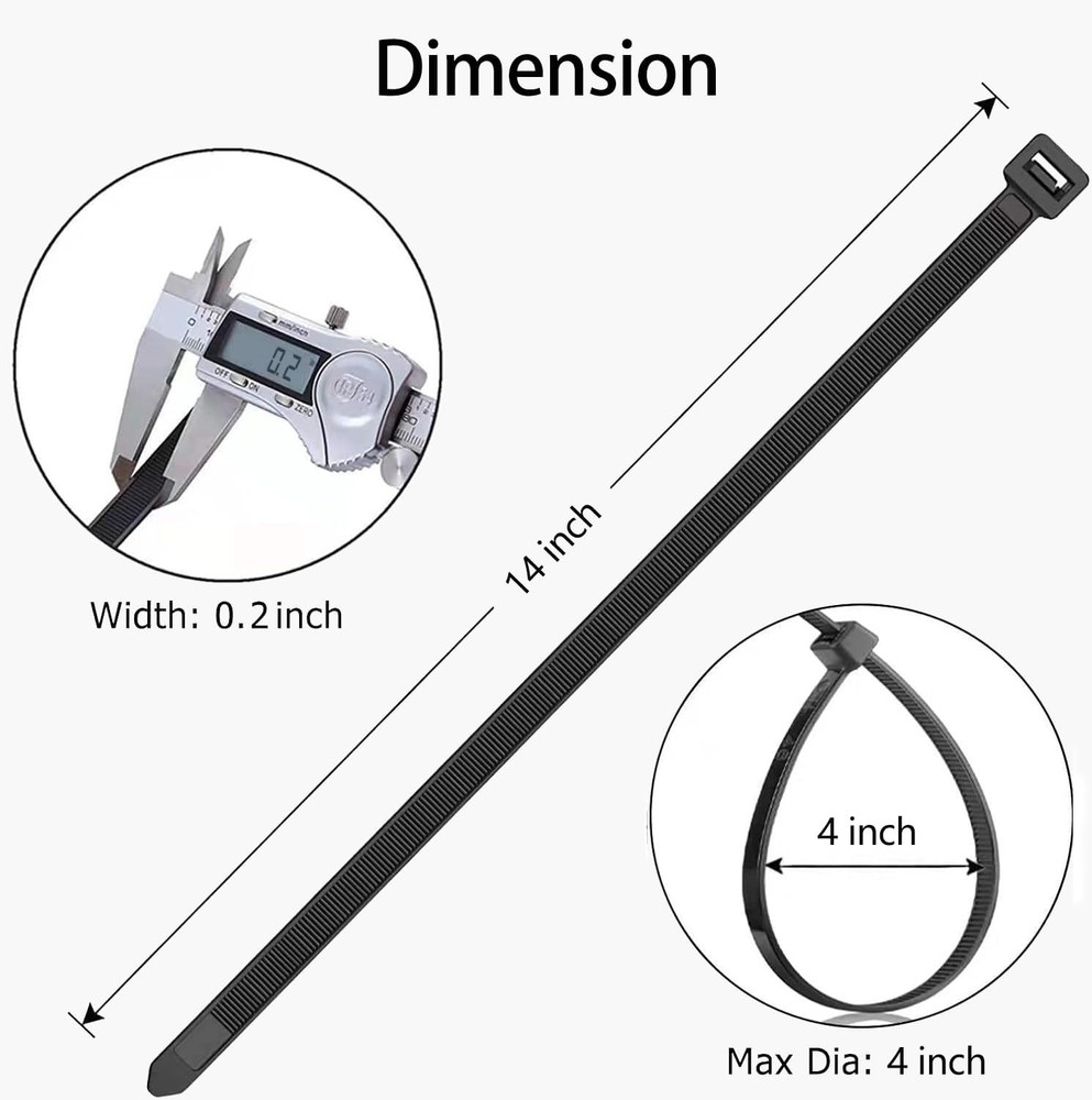 14 inch Black Zip Ties, 100 Pack, 50 LBS Tensile Strength, UV 14 Inch, Description: Product Instruction: There are 100 pcs black zip cable ties in the package, you don't have to worry about running out in the middle of your project. Premium Quality: Our ALIPOBO zip ties are made of UV resistant halogen free nylon 66. Operation temperature is -40°F to +185°F. Perfect Tensile Strength: The tensile strength of our plastic cable ties is 50 pounds, higher than others. The width of our zip ties is 0.2 inch, more wider than industry standards. You can use our wire ties with confidence without worrying they will break. Self-locking Design: ALIPOBO zip ties can be easily locked in, tightly and securely. One-piece construction for consistent performance and reliability. Broad use: ALIPOBO nylon zip ties can be used to tie cords and cables for electronics. 14 inch zip ties can be used to organize electrical wires and PC or laptop cords. You can use them to repair garden fences, hang lights, etc. Warranty: ALIPOBO zip ties have a 1-year warranty period. Other Tips: 1. Please keep out of reach of the children. 2. Please keep it sealed for long-term use. 3. Please use zip ties in proper temperatures and tensile strength. Package Includes: 14 Inch Black Zip Ties 100 PCS/Package. Features: Package Contains: 100 pcs UV resistant nylon zip ties Dimensions: Length: 14", Width : 0.2" (50lbs Tensile Strength) Color: Black Premium Quality: Made of industrial strength nylon 6/6, our zip ties are able to withstand even the toughest weather conditions (working temperature -40°F to +185°F). Each zip tie features a durable self-locking mechanism which doesn't falter over time. Indoor or Outdoor Use: With various applications for home, shed, garden, garage, organizing electrical cable ties. SHIPPING: We are always working hard to ensure your package arrives as soon as possible. Please understand that some factors like weather, high postal traffic, and the performance of shipping companies are outside of our control. We offer free shipping to the lower 48 states and ship within 3 business days of payment, usually sooner. We do not accept P.O. Boxes. Please provide a physical address. For shipping outside of the continental USA, we only use eBay's Global Shipping Program. The item is shipped to KY and then sent to the rest of the world. International customers are responsible for all duties and taxes. Continue to check out in order to calculate costs for shipping the item to your country. Messages regarding eBay's Global Shipping Program MUST be directed at eBay EXCLUSIVELY. PAYMENT: We accept payment by PayPal only (Can accept all kind of credit cards). Please pay as soon as possible after winning an auction, as that will allow us to post your item to you sooner. Payment must be received within 3 business days of auction closing. Before buying, please make sure your PayPal and eBay address is correct. If not, please correct it before payment. We have confidence in our products, but if you are not fully satisfied please contact us within 30 days of purchase and you will get full refund of your money. Return the product in the same condition you received it. Please note - return shipping will be paid by the buyer.