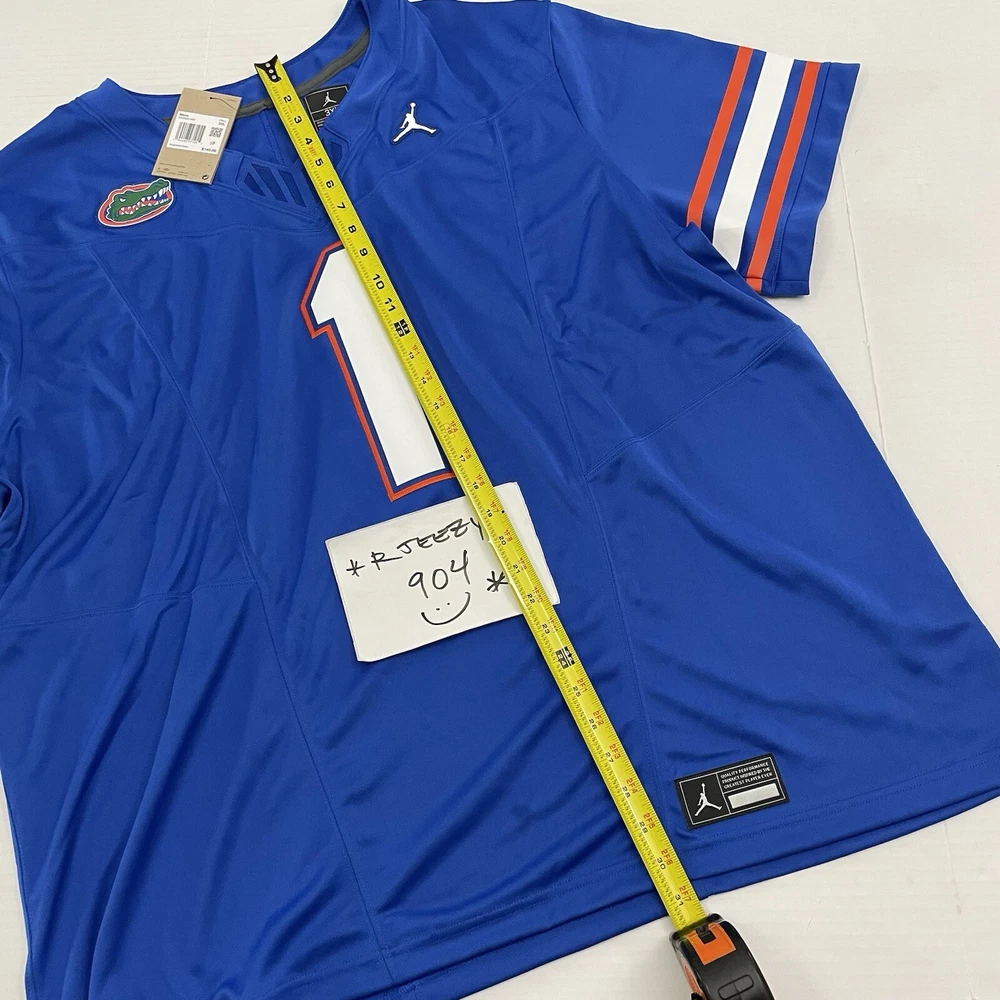 Nike Florida Gators UF Stitched #1 Blue Jersey Color: Royal Blue Tagged Size: Men's 3XL (Check Measurements) Retail: 100% Authentic Guaranteed FULL RETAIL ON BKSTR (OFFICIAL MERCH SHOP OF UF) !! Actual Measurements: Pit to pit: 28.5" Length: 31" Shoulder to shoulder: 23" Sleeve: 11" Always striving to ensure I provide everything you need to make sure you'll love your item. Feel free to reach out with any questions! Thank you for looking :)