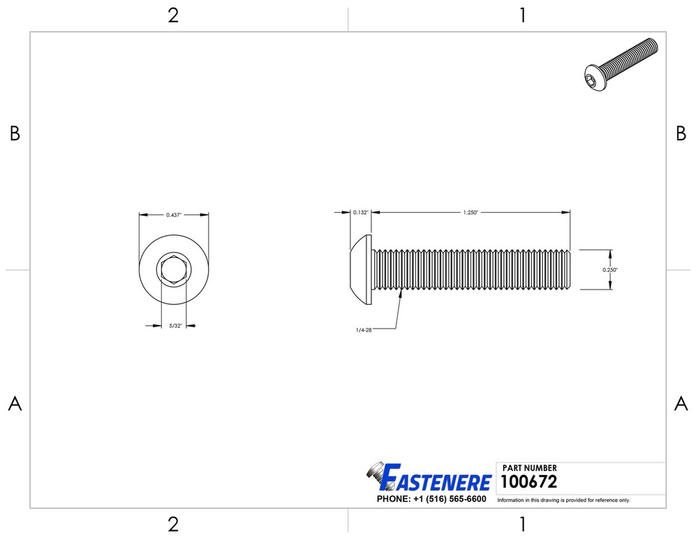 1/4-28 x 1-1/4" Button Socket Cap Screw Allen Hex Drive Stainless Steel Qty 100 Button socket cap screws offer a wider bearing surface and high tensile strength but have a lower profile than a socket head cap screw. The socket head enables driving where there is not sufficient space for wrenches or sockets. The point at the threaded end of the socket cap screw is machined flat so it will fit into a drilled hole. General Product Information Head Style : Button Drive Style : Allen Hex Key Drive Size : 5/32" Thread : 1/4-28 Length : 1-1/4" Quantity of Fasteners in Package : 100 Detailed Product Information: Head Diameter : 0.437" Head Height : 0.132" Thread Diameter : 0.250" Threads Per Inch (TPI) : 28 Coarse or Fine Thread : FINE Thread Coverage : Full Thread Thread Length : 1.25" Key Notes: Socket cap machine screws are precision fasteners that are known for their quality and durability. They are designed to meet challenging fastening applications in a variety of industries such as construction, automotive, and product manufacturing. They are also known for their efficient application performance and endurance. Button is low domed style head with a wide bearing surface that is perfect for use on applications in tight spaces. Hex socket screw drive has a hexagonal recess and may be driven by a hex key or Allen wrench that allows for high torque wrenching in tight spaces. The vast majority of stainless steel fasteners are produced with metals from the austenitic family. Their high levels of chromium and nickel provide tough corrosion resistance and the ability to withstand considerable physical strain without fracturing, albeit at a higher cost than the martensitic varieties. Made of stainless steel grade 18-8 which offers a high level of chemical and corrosion resistance and strength that will out perform and out last all zinc plated fasteners for years with out the need to perform costly and time consuming maintenance. Shipping: All orders placed before 3:30 pm EST Will Ship Same Day Tracking is provided on ALL Orders Priority Mail Shipping service is offered at a discount of only $3.95 UPS Ground UPS Next Day Air is available, Please inquire for pricing Returns : ALL returns are accepted if returned within 60 days. Money Back or exchange guaranteed. NO Restocking Fees. For YOU, we constantly strive to find ways of improving our performance.