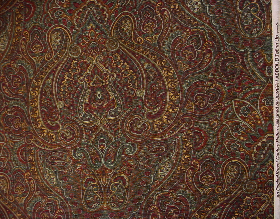 This offering is for a luxury material from a To the Trade Only design house, available here at a fraction of the retail cost. Design House: Kravet Pattern Name: TAZZA/D Pattern Number: TAZZA/D.930 Colorway: Collection: Length and Width: 14-3/8 yards by 54 inches wide A Brief Description: A beautiful printed cotton featuring intricate and highly detailed floral paisley designs in vibrant colors of emerald, rust, coffee, aqua and tan. Smooth hand, wonderful drape and matte finish. Fiber Content: 100% cotton Durability / Double Rub Count: 15,000 Weight per yard: 13 ounces per yard Repeats: Horizontal - Inches / Vertical - 25.5 Inches Printed in: United States Value per yard: $89.00 Total Value of offering: $1,279.37 --------------- Our Friendly Fine Print: All material is first quality in perfect condition and is carefully stored in a smoke-free, pet-free environment. Shipping: Distinctive Threads offers free shipping to the lower US States as part of our value. If you are located outside the continental United States, please contact us for a shipping quote. Worldwide shipping is available via the United States Postal Service and FedEx International. Please feel free to message us for a shipping quote. A note about color: We describe the colors we see as best we can and hope the photos accurately depict the colors. Color is subjective and differs from person to person and lighting. We also offer samples for purchase. Thank you for stopping by our store. We look forward to providing you with an exceptional, unique and distinctive online experience.