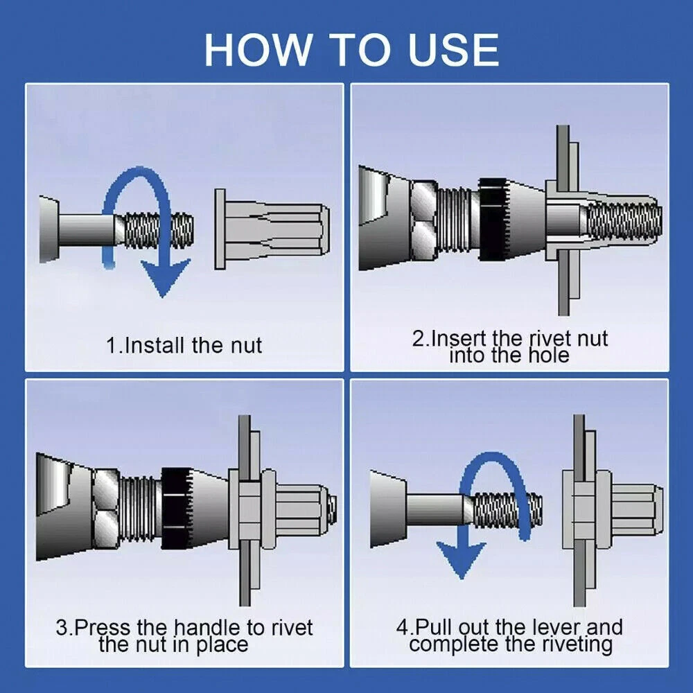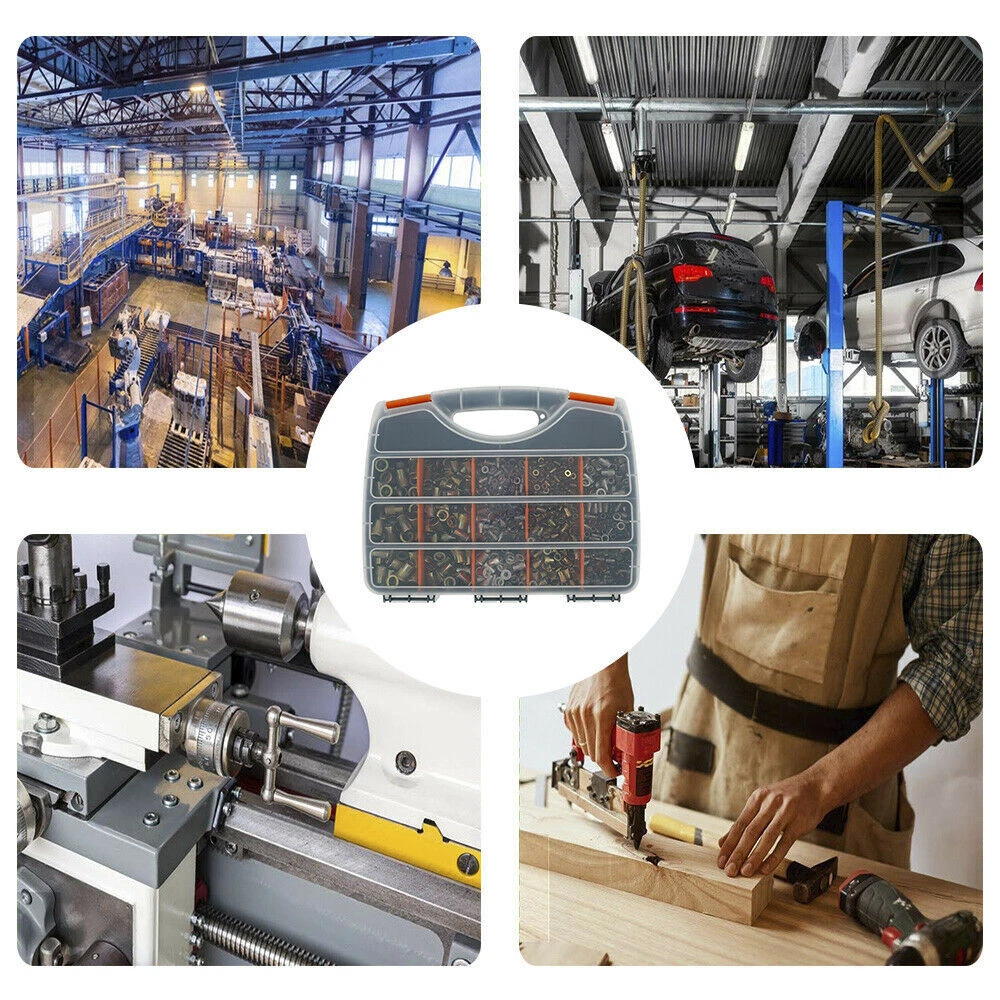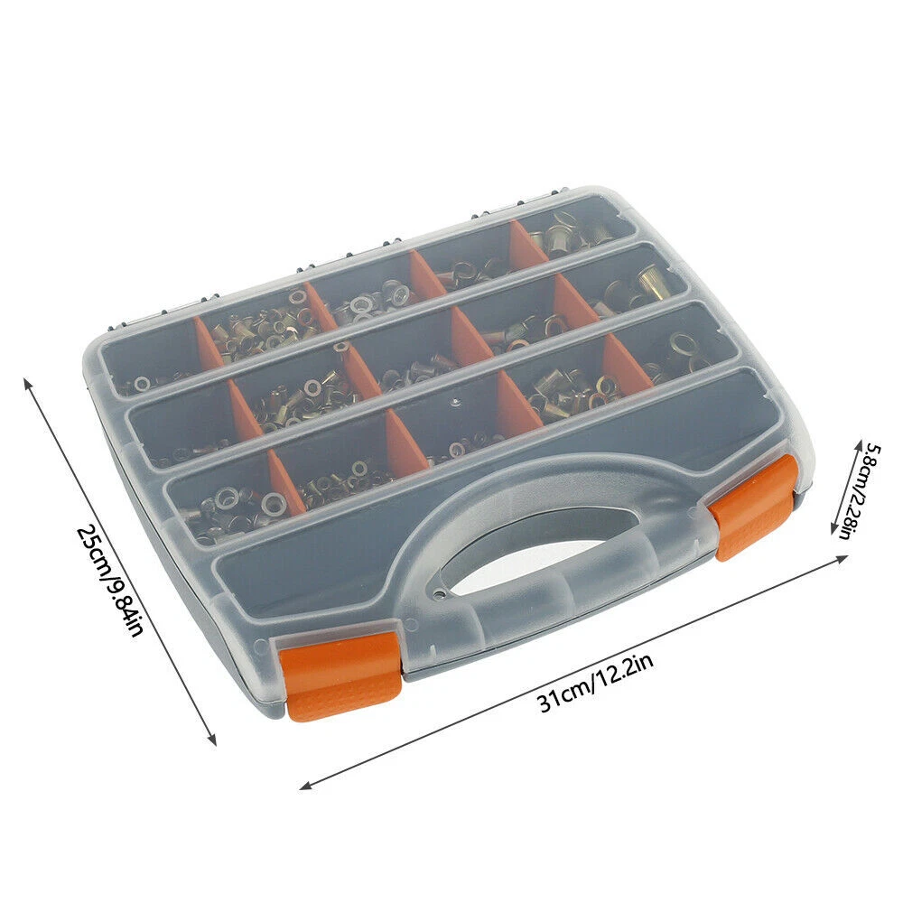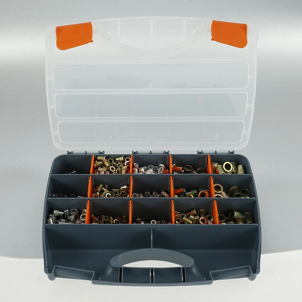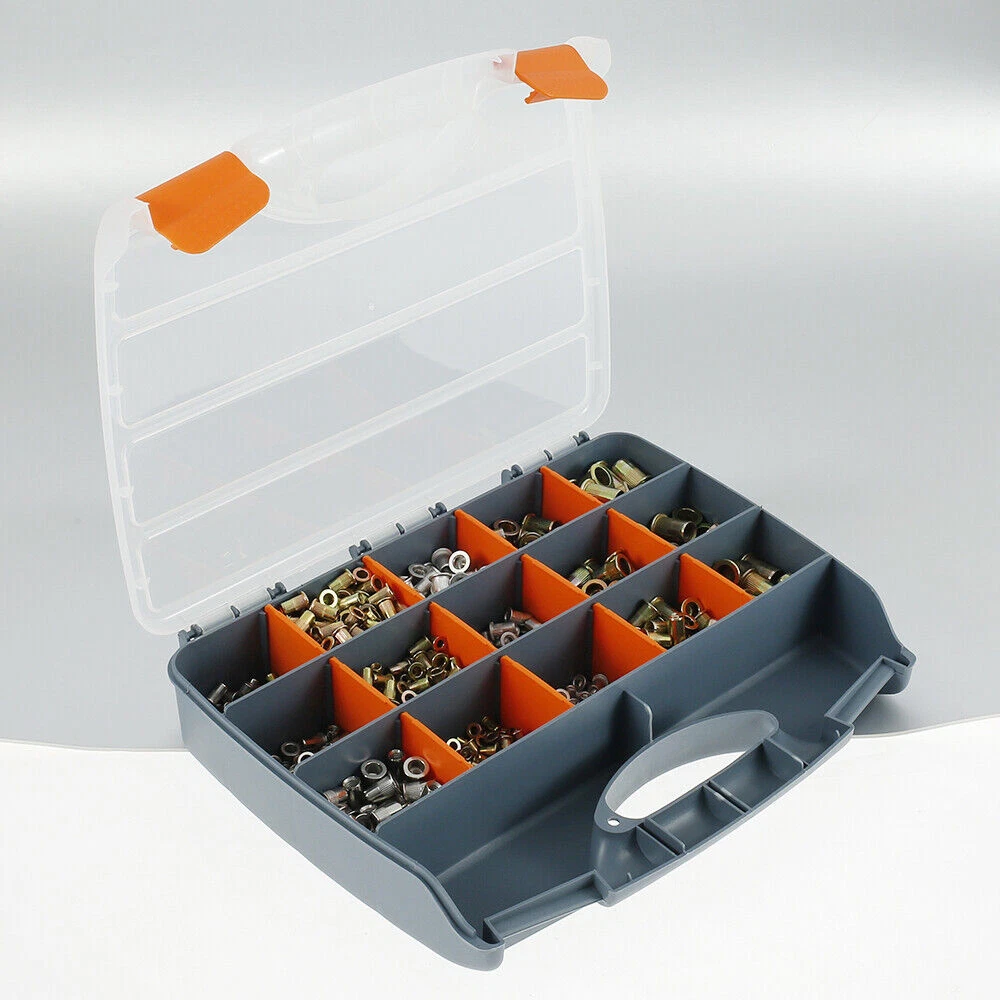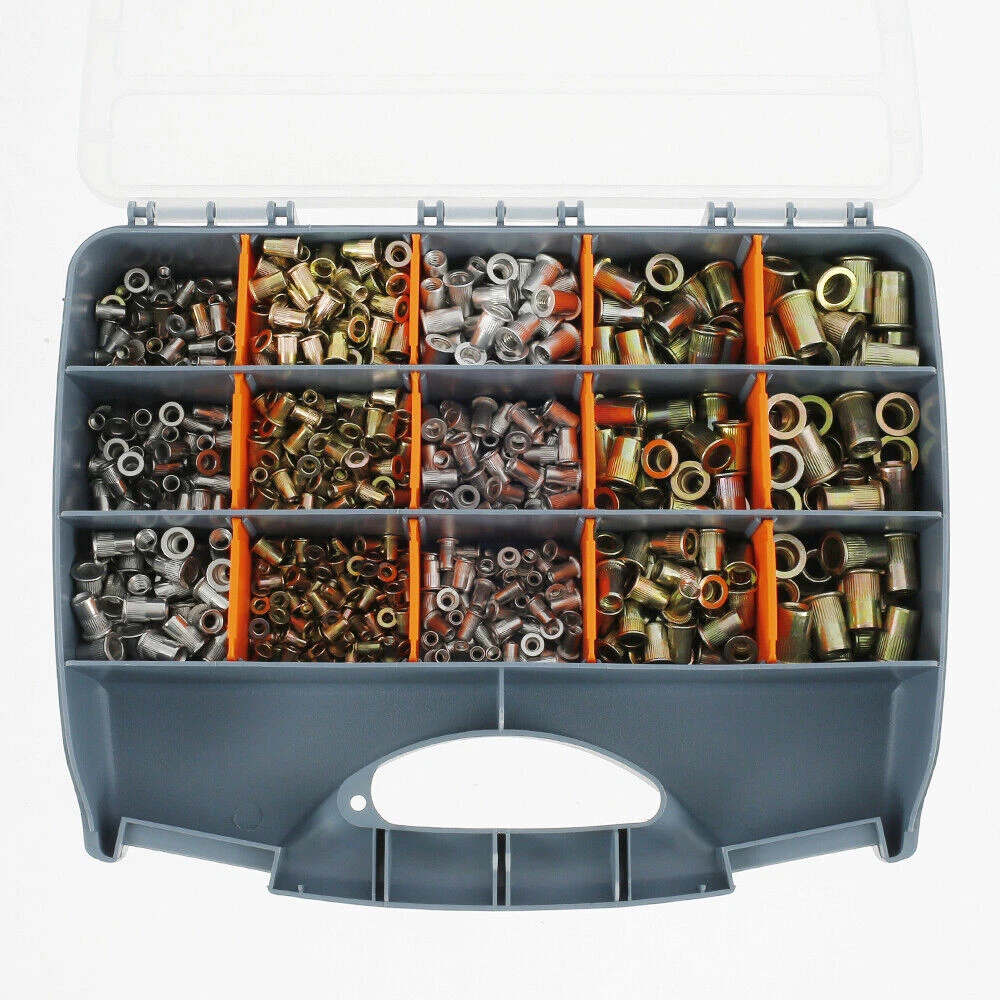 1450 pcs Carbon Steel, Stainless Steel, Aluminum Rivet Nuts Kit, Threaded Insert Nut Nutsert Rivnuts Flat Head, Rivnut Nutsert Assort Metric with Storage Case for Rivet Tool Bullet Point Material: zinc steel, stainless steel, aluminum Size: 31 x 25 x 5.8 cm (Due to the manual measurement, there will be an error of 1-3 cm.) Pictures Description 1.It is suitable for processing thread lock nuts into thin materials, such as metal plates, plastics and glass fibers. 2.Metric rivet nut socket head threaded nut series M3 M4 M5 M6 M8 M10 M12 3.Rivet nuts can be installed in many different materials, including steel, plastic and fiberglass 4.High strength and hardness, easy to use, durable 5.Easy to install and use Package including 200 x M3 Zinc Steel Ribbed 200 x M4 Zinc Steel Ribbed 200 x M5 Zinc Steel Ribbed 150 x M6 Zinc Steel Ribbed 50 x M8 Zinc Steel Ribbed 50 x M10 Zinc Steel Ribbed 50 x M12 Zinc Steel Ribbed 50 x M4 Stainless Steel Ribbed 50 x M5 Stainless Steel Ribbed 50 x M6 Stainless Steel Ribbed 100x M3 Aluminum Ribbed 100 x M4 Aluminum Ribbed 100 x M5 Aluminum Ribbed 100 x M6 Aluminum Ribbed 1 x Storage Case Shipping and Payment Only PayPal accepted Your order will be shipped within 1-2 business days From Texas once we receive your payment. We do not ship on Sundays or public holidays Ship to PayPal confirmed address ONLY Return We stand behind our products. Items can be returned for exchange or full refund within 14 days from the date you receive your merchandise. For all cases, shipping and handling fee is not refundable and buyer is responsible for the return shipping cost. If it is a non-seller mistake case, a 20% restocking fee will be charged. Warranty and Feedback We guarantee you a five star shopping experience with us. If you are not satisfied with your purchase, please contact us. All faulty due to improper installation or improper use will NOT be covered by the warranty. Any physical damage will void your warranty too. Feedback will be left automatically when your item is shipped. We appreciate you leave 5 STAR of Detailed Seller Rating and POSITIVE Feedback for us upon receipt of your item. Warranty excludes normal product lifetime wear-out, wear and tear or abuse. Warranty does not apply to conditions resulting from misuse, abuse, negligence, accident, improper application, improper installation or alteration. If you encounter any problems about anything, please email us to allow us an opportunity to correct any problem and we will do our best to assist you solve the issue.