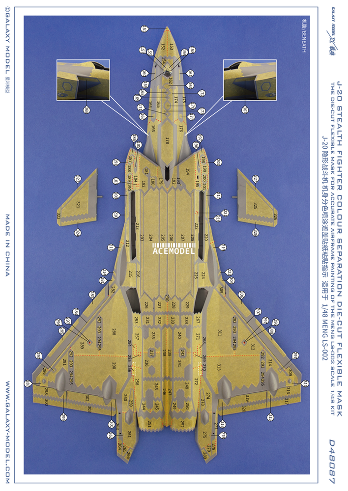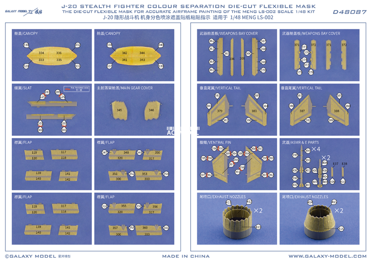 1/48 Chinese J-20 Stealth Fighter Color Separation Die-Cut Mask for MENG LS-002 Galaxy 1/48 Chinese J-20 Stealth Fighter Color Separation Die-Cut Mask for MENG LS-002 Package Included: 1x 1/48 J-20 Stealth Fighter Color Separation Die-cut Decal Flexible Mask Specifications: Material: Decal Sheet Scale:1:48 Reminder: Not suitable for children under 3 years old due to small parts. Contains parts for one model. Actual model may vary from the image on the box. Assemble need glue(suitable for ABS Plastic),our product not include this glue,you need purchase separate.Hope you can understand. Payment Delivery details Terms of sales Feedback Contact us Payment Special financing available Select PayPal Credit at checkout to have the option to pay over time. Qualifying purchases could enjoy No Interest if paid in full in 6 months on purchases of $99 or more. Other offers may also be available. Interest will be charged to your account from the purchase date if the balance is not paid in full within 6 months. Minimum monthly payments are required. Subject to credit approval. The PayPal Credit account is issued by Synchrony Bank. Delivery details 1.We do everything we can to ship your orders out as soon as possible. 2.Shipping & Handling >>>For American orders, it normally takes 7-15 days for delivery. Handle time takes 2 bussiness days. >>>For International orders, it normally takes 8-20 days for delivery. Duties and taxes may apply. Pleasa check with your country’s Custom and eBay policy for more information. Terms of sales Out 30-day Satisfaction Guarantee assures our customers that they will receive all orders promptly and exactly as described. In addition , it allows customers to return new and unused products in their original factory condition for any reason within 30 days from the date of purchase. Notice: 1.All returns must be pre-approved by Autopartm and have a return merchandise authorization (RMA) number.Unauthorized returns will not be accepted. 2.Buyers are responsible for appropriate packing, returning shipping cost, insurance and returning the item in “new” condition. Used items will not be accepted for return. 3.We will replace the returning item with an identical item, issue a full store credit or a full refund. Feedback 1.We appreciate your business and strived to improve our customer service and our commitment to quality. 2.We will leave a positive feedback immediately after payment is received. We appreciate a positive feedback as much as you do. 3.If for some reason there is any issue with the purchase, please contact us prior to leaving feedback, and we will be glad to work with you to have it resolved. Contact us Our Working Time:(GMT+8)Monday to Friday,9:00-18:00. For inquires and customer support, please send your email via ebay email system. All emails will be responded to within 24 hours during business days.