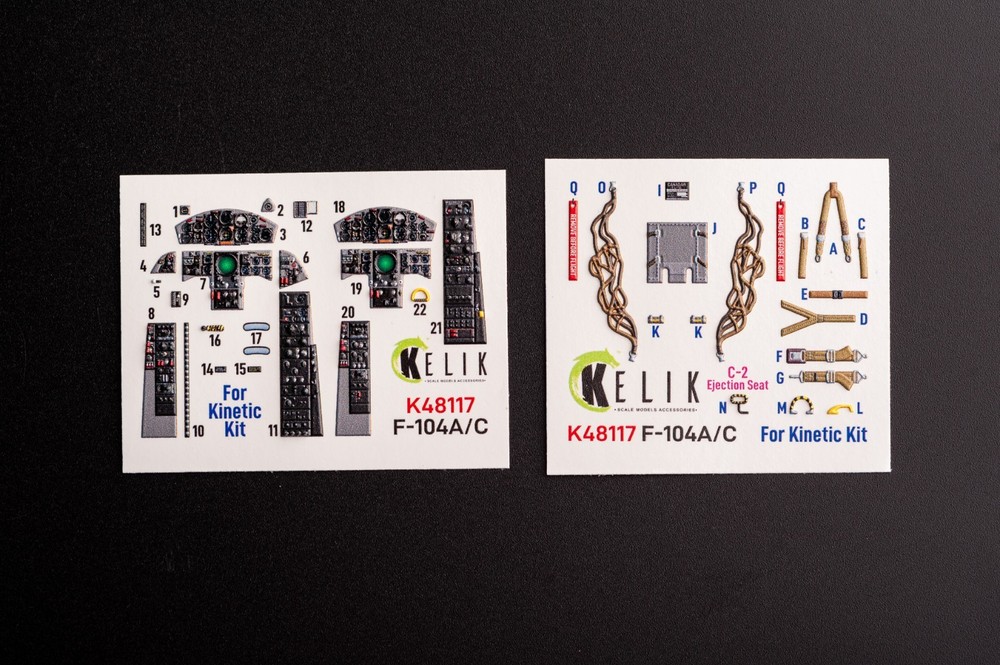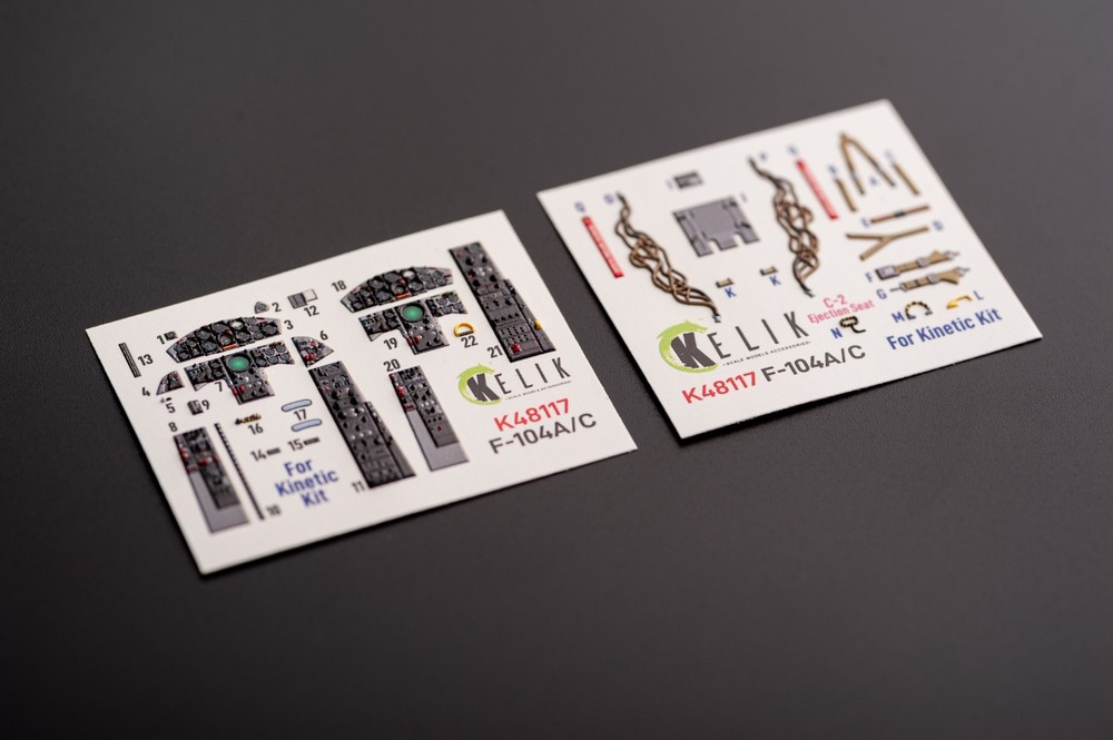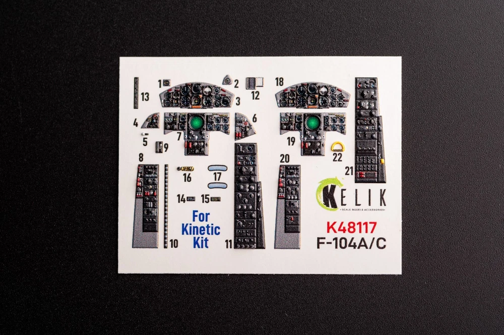 F-104 A/C. Interior 3D Decals (for Kinetic Aircraft model kit) Scale 1:48 KeliK K48117 Manufacturer: KeliK (Ukraine) Country/Region of Manufacture: Ukraine Scale: 1:48 Model (SKU): K48117 Condition: New in Box Characteristics of Kelik 3D Decals Material: Paper, Acrylic (3D Decals) Category: Interior 3D Decals Type of equipment: Aircraft Recommended kit: Kinetic Country of origin: USA Skill level: Advanced Type aircraft or vehicle: Lockheed F-104 Starfighter ................................................. Step into the extraordinary world of scale modeling with our premium selection of scale model accessories , crafting supplies, and tools. Whether you're a seasoned modeler or just starting, we offer everything you need to create lifelike replicas of automobiles, aircraft, ships, and trains. Elevate your projects with: π¨ Miniature Components for added realism. π οΈ Precision Tools to craft every detail flawlessly. π‘ Supplies designed to unleash your creativity. Let your imagination soar with the best in scale model craftsmanship! π Customer Support: Fast response times Friendly service & custom order assistance Need multiple items? Message us β we can adjust quantity or restock quickly! π About Us ποΈ We provide a wide selection of 100% brand-new products at competitive prices βdirect from manufacturers to you. π¬ Need help? We're always here to assist you! βοΈ Enjoy a simple, secure, and worry-free shopping experience. π³ Payment π΅ All eBay payment methods accepted, giving you convenience and flexibility. π‘οΈ Transactions are protected by eBayβs Buyer Protection Program for your peace of mind. π Shipping Details βοΈ Fast & Reliable Shipping : Orders are shipped via trusted airmail services and delivered by your national postal service. π¦ Tracking Included : Monitor your package every step of the way. Shipping from Ukraine . Estimated delivery: 10β25 days . Handling time: 1β5 business days . π Shipping Discounts π° Save more with combined shipping discounts ! 50% off shipping for each additional item. π§ Request an invoice before payment for an updated total. π Hassle-Free Returns π Not satisfied? No worries! β Refunds issued promptly upon receipt of the item in its original condition. π― Shop with confidence and craft your perfect models today!