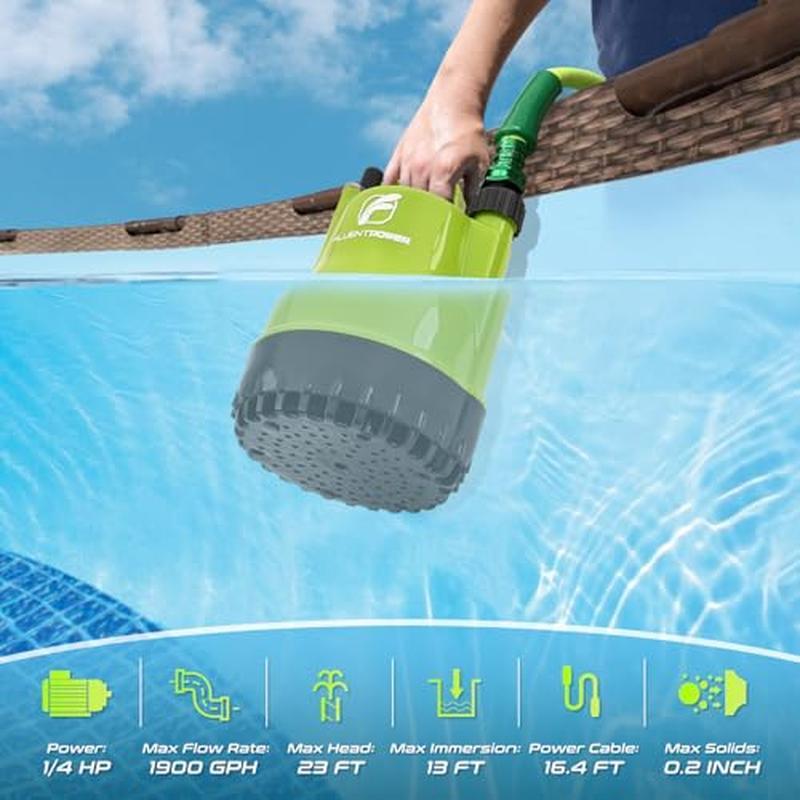 This little pump is a powerhouse! Handles water removal like a champ—whether it's pools, ponds, or flooded basements. Super portable, easy to use, and moves water fast with that 1900GPH flow. The on/off switch is a nice touch, and the price is solid for the performance. No leaks, no fuss—just reliable pumping. Great for emergencies or regular use!