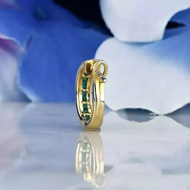 Era: Undated Vintage: No Ear Area: Lobe Signed: No gtin13: Does Not Apply Shape: Round Material: Metal, Gemstone Customized: Yes Brand: sp_jewels Metal: Sterling Silver Main Stone: Simulated Emerald Occasion: Anniversary, Birthday, Christening, Christmas, Confirmation/Communion, Engagement, Graduation, Mother's Day, Valentine's Day, Wedding Theme: Beauty MPN: NA Main Stone Shape: Round Seller Warranty: Yes Style: Hoop, Huggie Main Stone Creation: Simulated Personalize: No Features: Engraved Antique: No Color: Yellow Secondary Stone: Simulated Diamond Wholesale: Yes Country/Region of Manufacture: India Cut Grade: Excellent Base Metal: Yellow Gold Plated Number of Gemstones: Multi Handmade: Yes Closure: Clip-On Main Stone Color: Green Type: Earrings UPC: Does Not Apply Main Stone Treatment: Not Enhanced Metal Purity: 925 Setting Style: Prong Country of Origin: Unknown