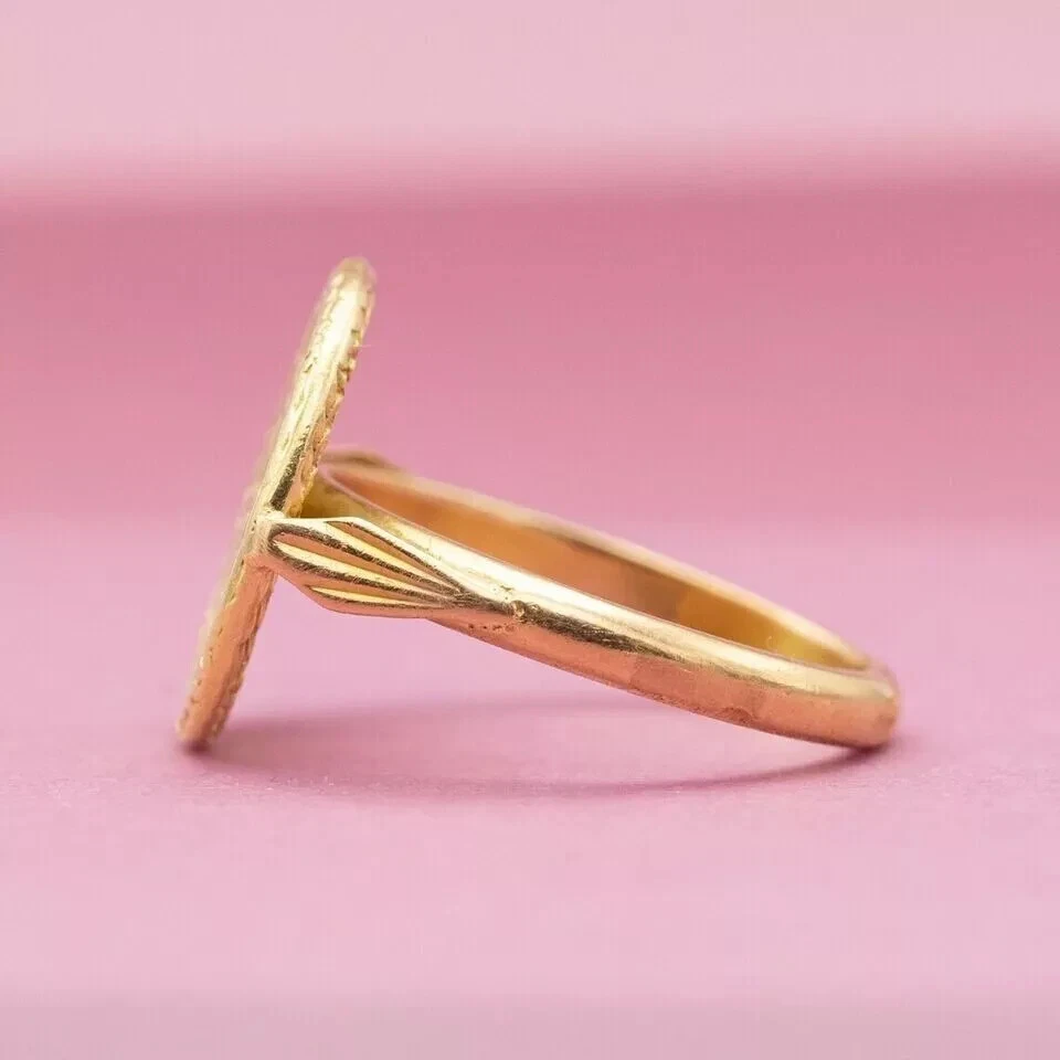 0.30 Ct Baguette Lab-Created Ruby Love medal AUGIS Ring 14K Yellow Gold Plated