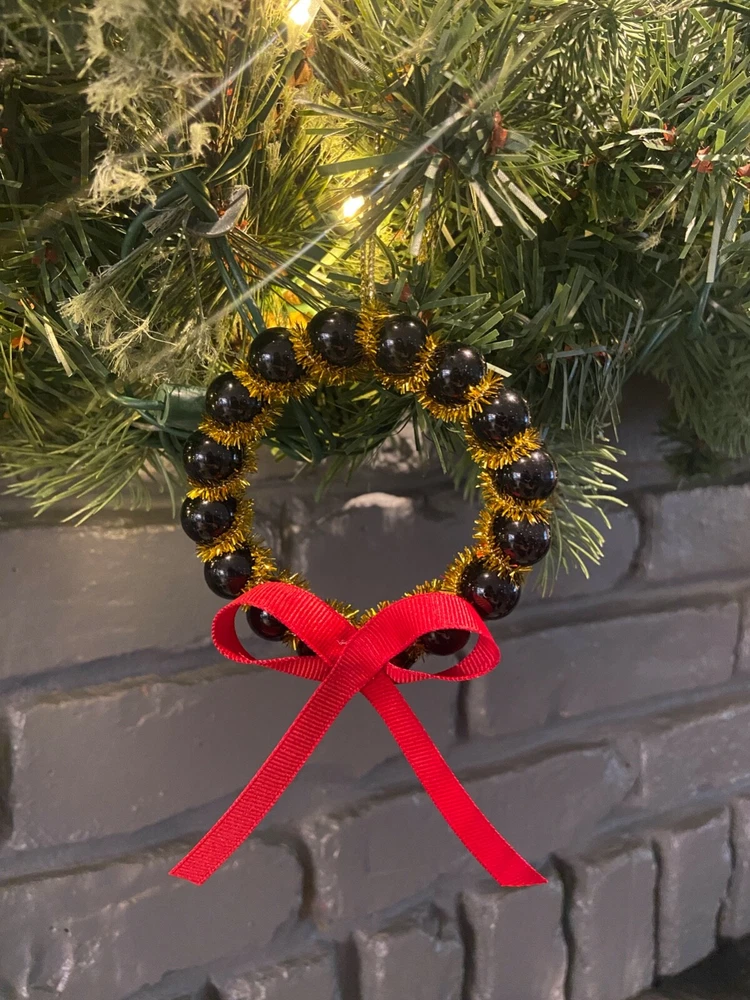 D R E A M P A R T Y C R E A T I O N S Thank you for visiting us: 14MM Pearls MINI Wreath Tree Ornament Choose Design & Package Amount Mini Wreath Ornament Measures 3-1/4" in Diameter. Choose from 3 designs. Each designed with a 3/8" Grosgrain Bow. Add a touch of elegance to your holiday décor with this beautiful 14MM gold pearls mini wreath tree ornament. Choose from a variety of designs and package amounts to create the perfect addition to your home Holiday Decor. Made from quality acrylic Pearls, this ornament is sure to last for years to come. Whether you're looking for a unique gift or simply want to add some festive flair to your own space, this mini wreath tree ornament is the perfect choice.
