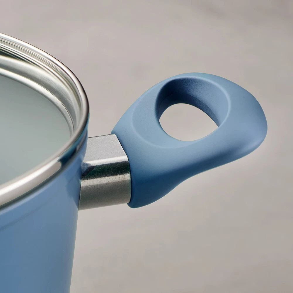 14-Piece Set Includes: 2 Frying Pans (8 and 10-in), 2 Sauce Pans with lids (1.5 and 3-qt), a 4.5-qt Saute Pan with lid, a 5-qt Dutch Oven with lid, and 4 Wooden Cooking Utensils Durable Construction: Set includes two fry pans (10 and 12-in) made from 4.0mm heavy-gauge forged aluminum with an induction base for even heat distribution and long-lasting performance Non Stick Cooking Surface: Grey ceramic interior provides a sleek, non-stick and easy-to-clean surface Convenient Lids & Handles: Tempered glass lids with an aluminum ring and soft-touch Bakelite handles offer secure handling, visibility, and moisture retention while cooking Versatile Compatibility: Suitable for all cooktops, including gas, electric, induction, and ceramic glass. Oven safe up to 350°F (176°C) and easy to clean in the dishwasher