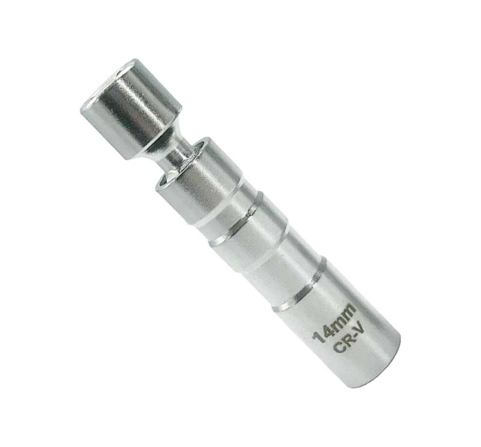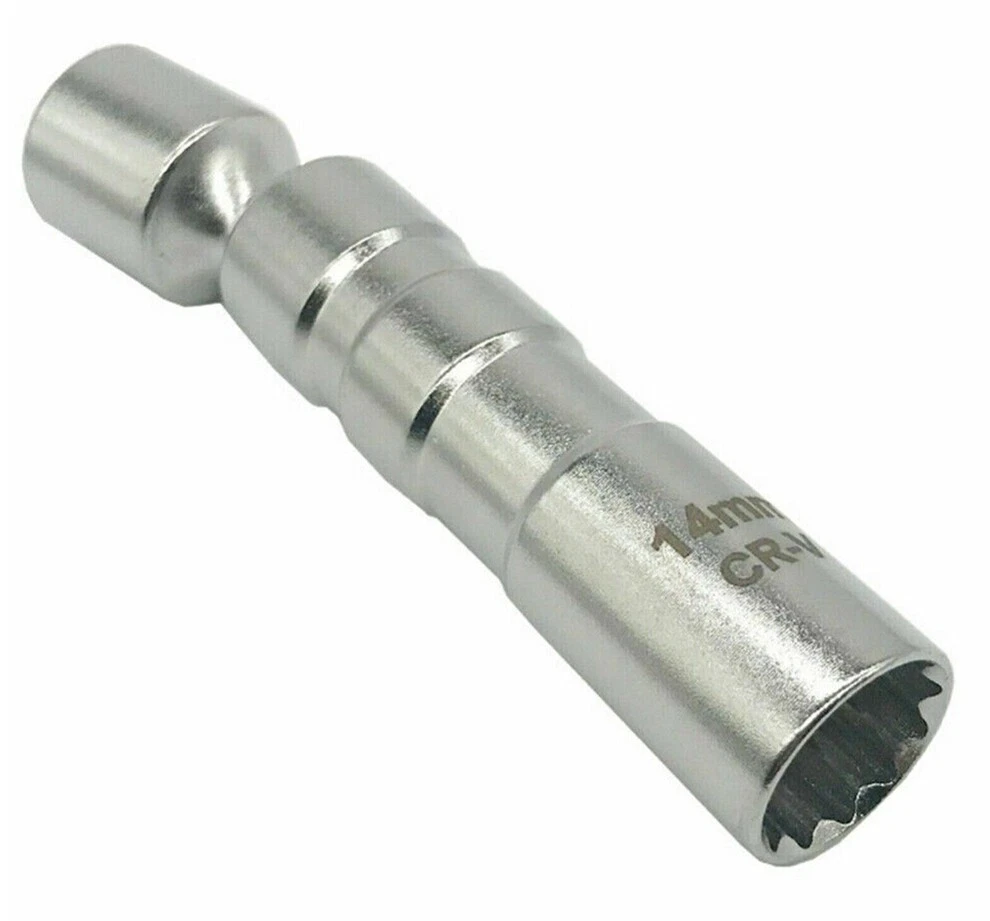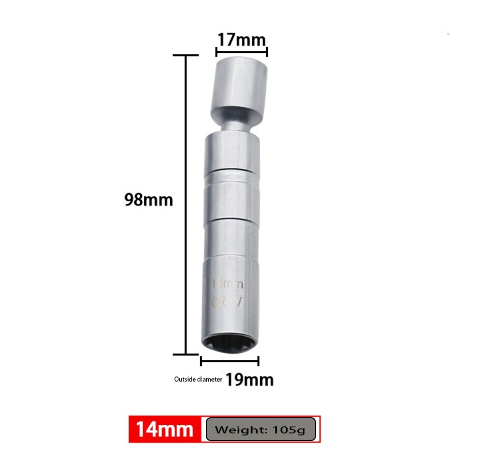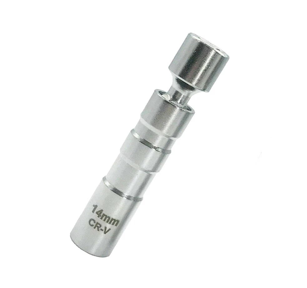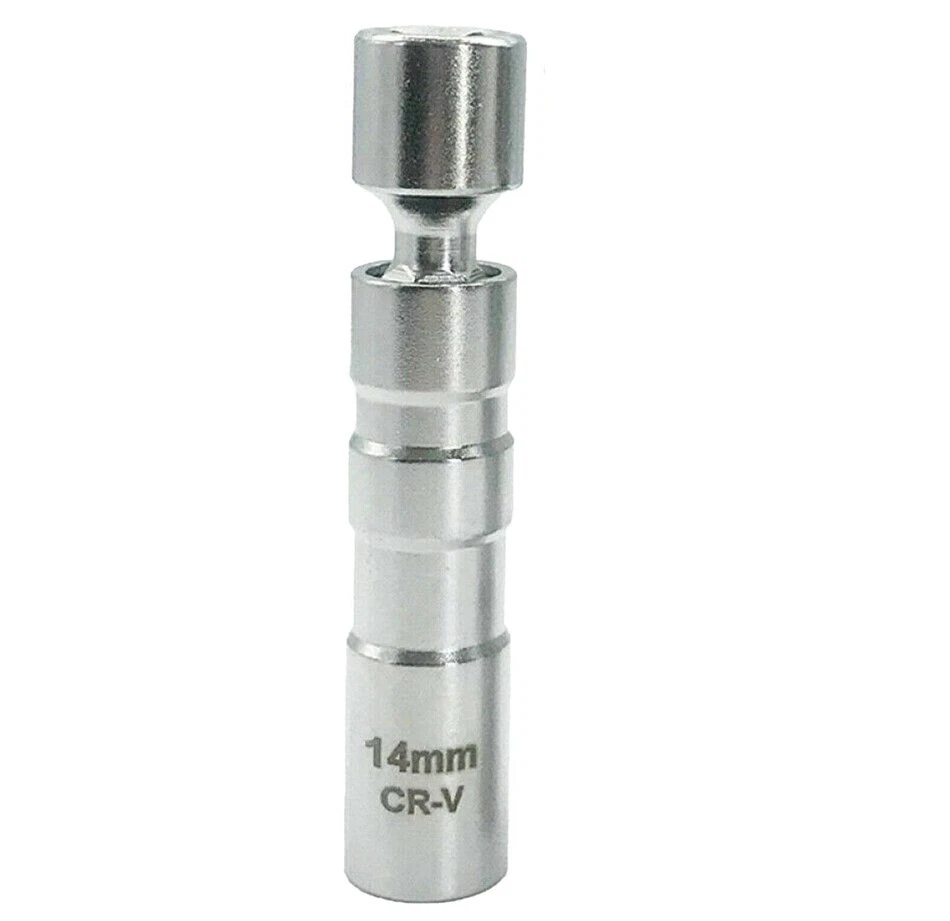 360 degree swivel action for maximum flexibility; Unlike traditional runner gaskets, the magnetic core retains and protects the spark plug for easier installation, ensures no more plugs dropping into the engine compartment. Color:silver Size(approx.):14mm x 12pt (98mm Length) Package included:1* Spark Plug Socket 14mm 3/8" Drive Magnetic Thin Wall Wobble Spark Plug Sleeve Socket Remove Tool*1 360 degree swivel action for maximum flexibility; Unlike traditional runner gaskets, the magnetic core retains and protects the spark plug for easier installation, ensures no more plugs dropping into the engine compartment. Color:silver Size(approx.): 14mm x 12pt (98mm Length) Package included: 1* Spark Plug Socket Brand Unbranded Manufacturer Warranty 3 Months Manufacturer Part Number Does Not Apply Size 14mm Length 98mm Quantity 1PCS Magnetic Spark Plug Socket Color Silver Drive Size 3/8" Material Chrome Vanadium Alloy Steel Socket Type Universal/Swivel Number of Pieces 1pcs Set or Single Item Single Item Drive Type 12 Point