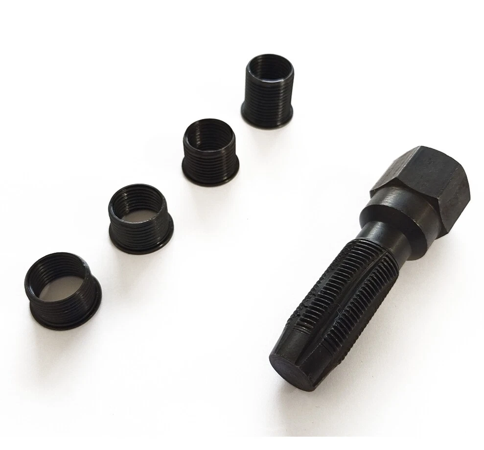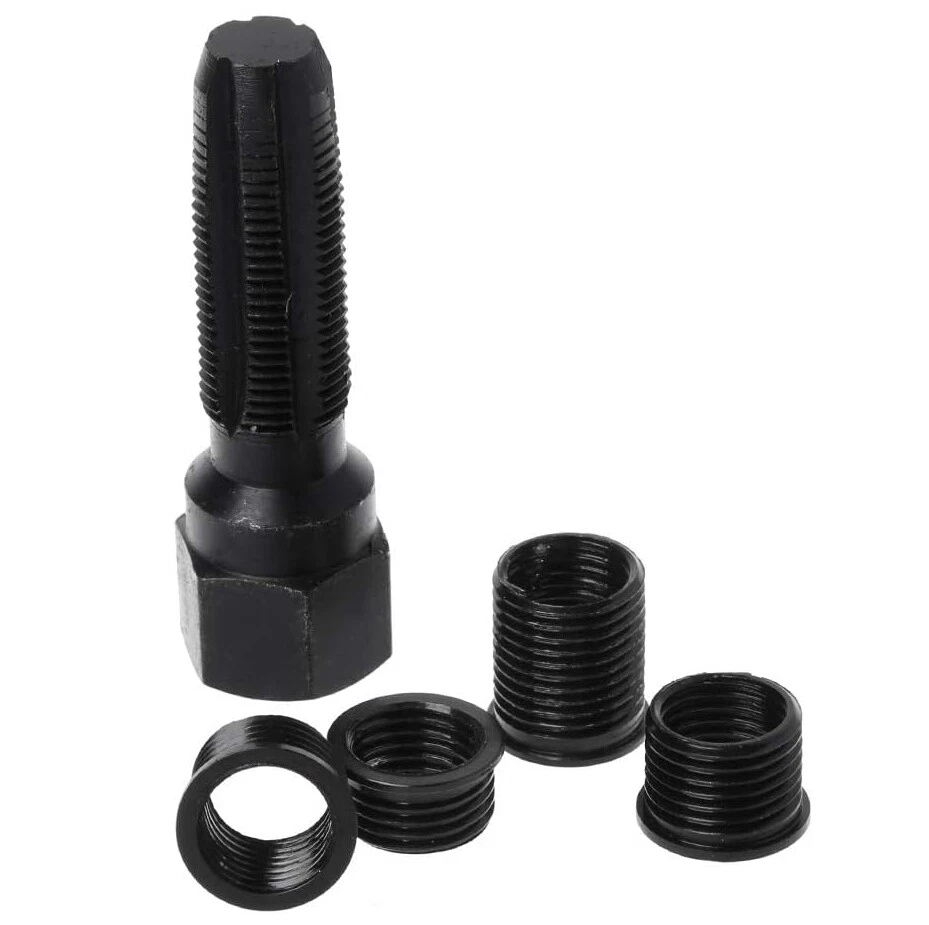 This re-threader kit is a lifesaver for fixing stripped spark plug threads! The hardened carbon steel construction ensures durability, and the four included inserts cover multiple sizes, making it super versatile. Easy to use and saves money on costly repairs—highly recommend for DIYers and mechanics alike. A must-have tool for extending spark plug life!