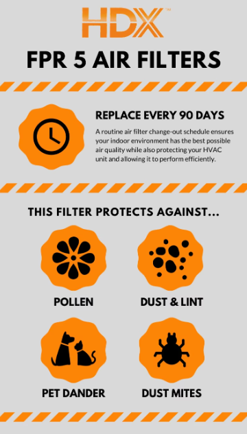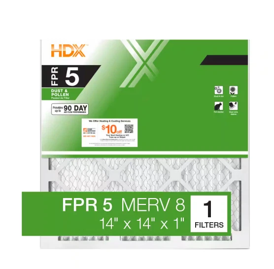 1-Pack Standard Pleated Air Filter 14x14x1, Air Filters Replacement FPR 5 MERV 8 HDX air filters captures and traps dust mites, pollen, lint, and pet dander. Created to provide higher efficiency and better overall performance than standard pleated filters. Works in furnaces, HVACs, wall vents and ceiling vents. The FPR 5 filter with a MERV 8 rating can last up to 90-days Pack Size: 1-Filter (1-Pack) Policies FREE SHIPPING within the 48 states! Your order will be processed within 2-3 business days once the payment has been received. And standard shipping typically takes 3-5 business days depending on the item. Items can be returned for exchange or full refund WITHIN 30 DAYS from the date you receive your merchandise. Return shipping is the BUYER’S RESPONSIBILITY unless the return is a result of our mistake or manufacturer. If you have any problems with your order, please contact us before taking any action. Customer satisfaction is very important to us! Thank you for supporting our store!