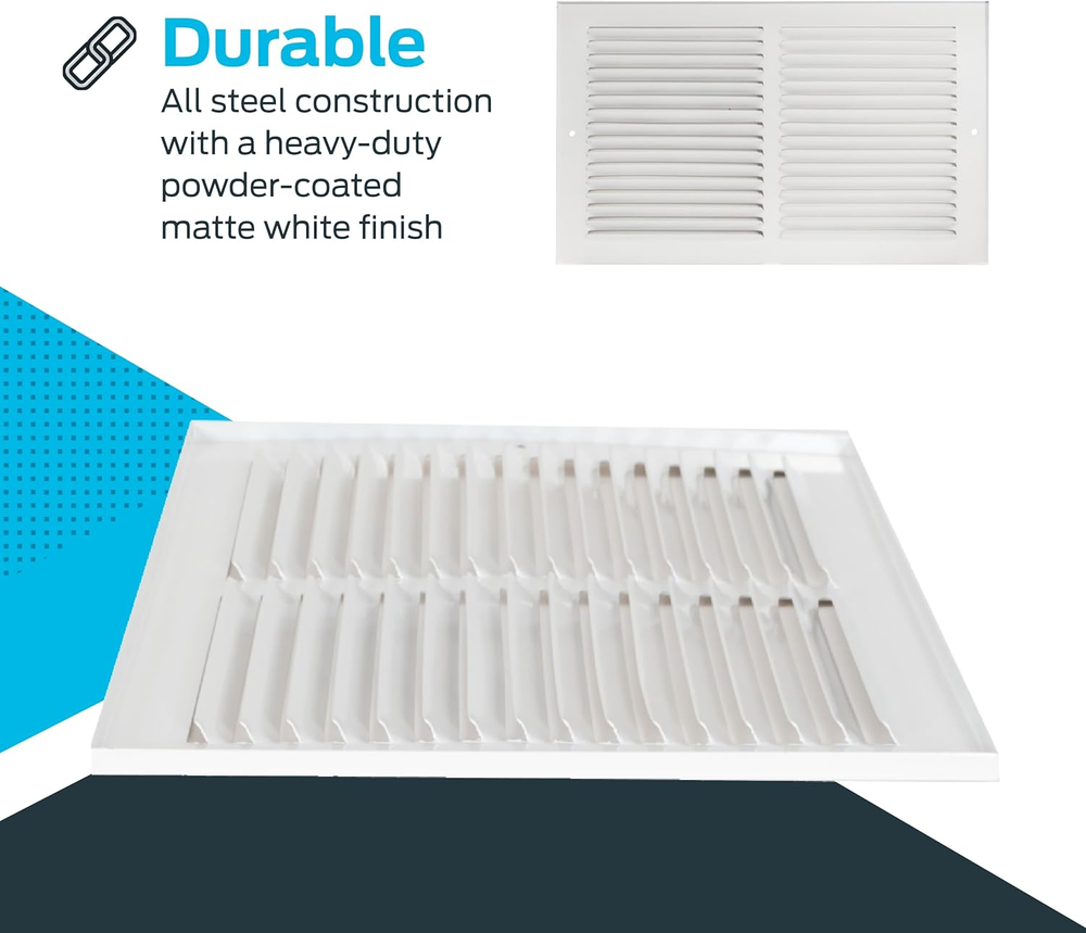 This vent cover is perfect for keeping things clean and stylish! The sturdy steel construction feels durable, and the white powder-coated finish blends seamlessly with any decor. Easy to install on walls or ceilings, it fits standard duct openings while providing excellent airflow. Great value for the price—highly recommend for a polished HVAC look!