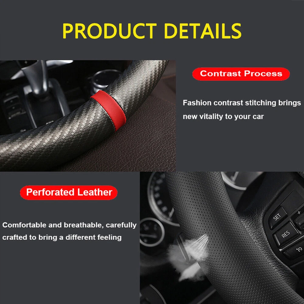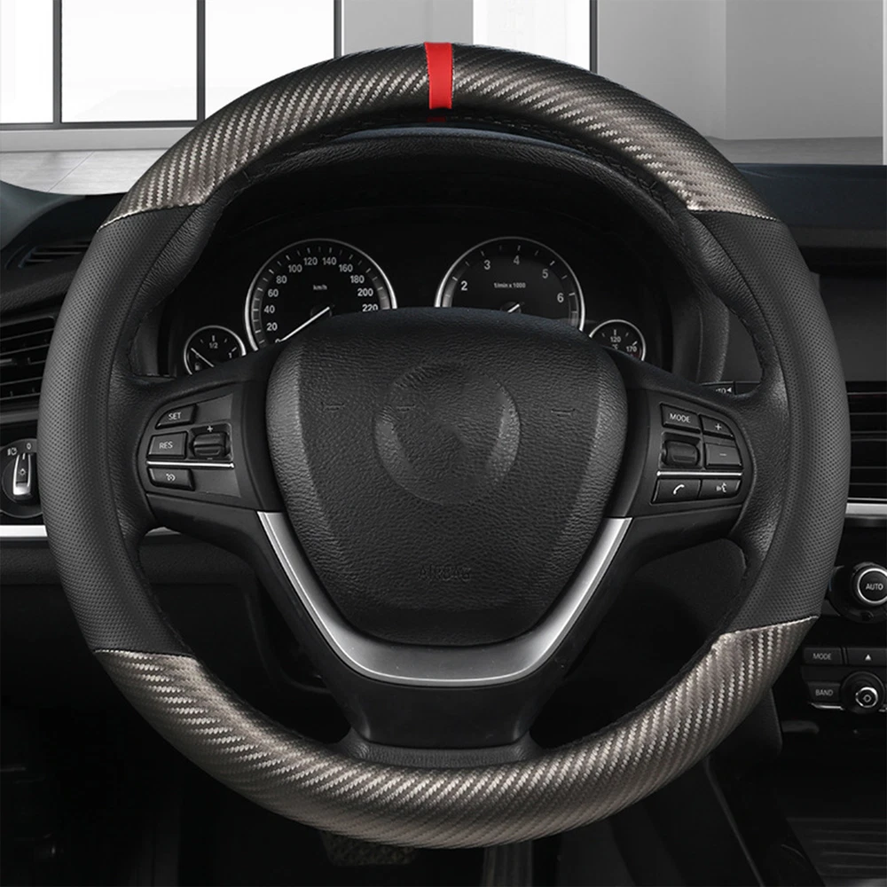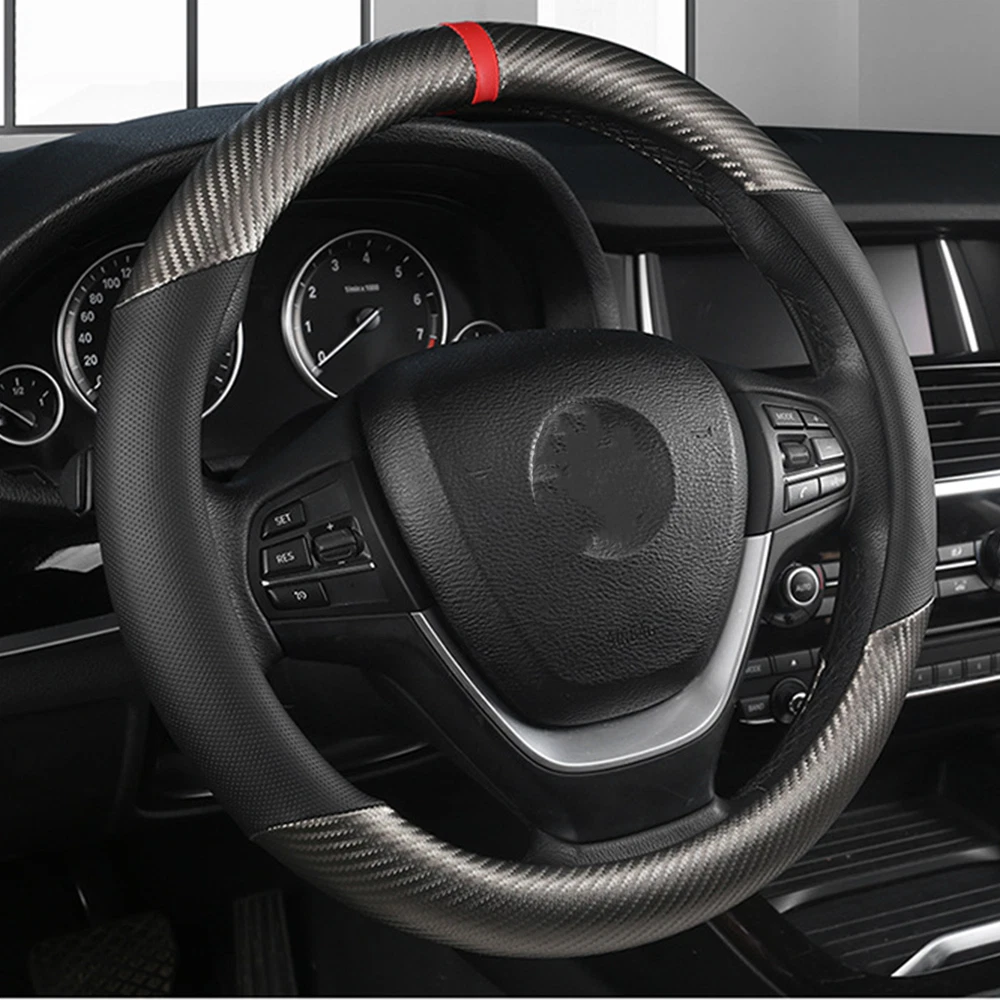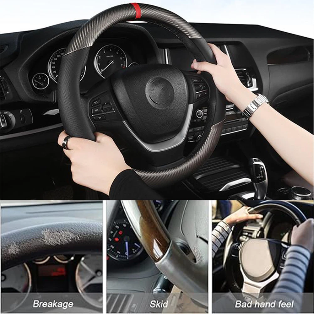 15 "38CM Anti Slip Breathable Steering Wheel Covers Carbon Fiber Car Universal