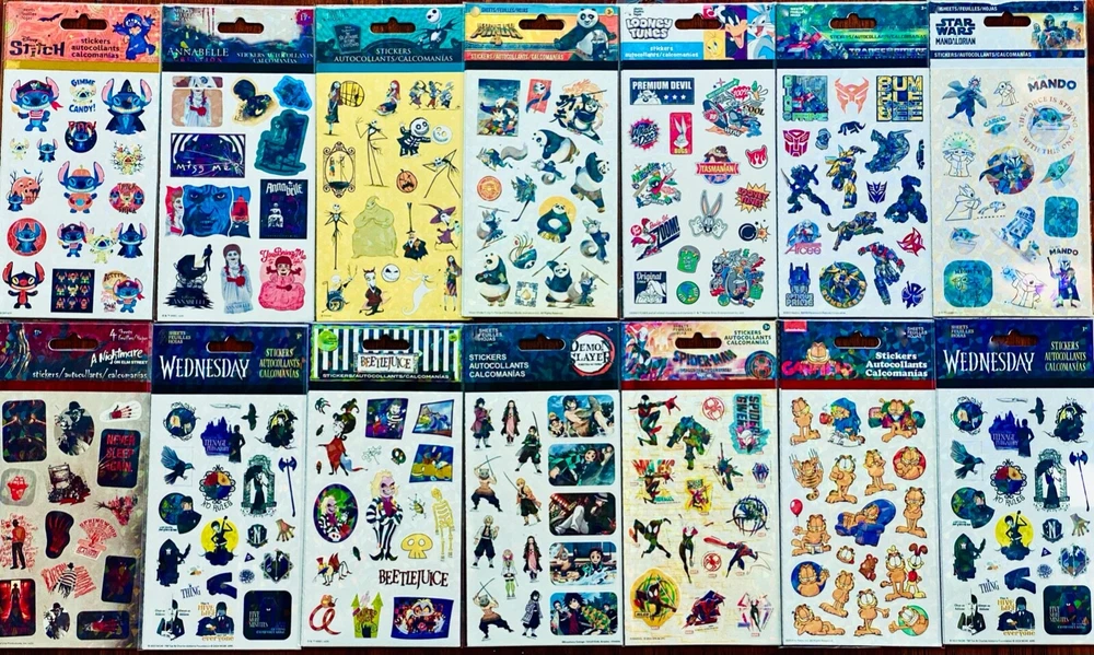 Randomly Selected or Message me with your Sticker Request... Add some fun to your scrapbooking projects with these 15 different Full sheets of stickers. Perfect for kids, children, and teens, these stickers come in a variety of designs featuring your favorite cartoons, characters, shapes, sizes and themes. The stickers are available in a range of types, including puffy bubble foam, glossy metallic, prism 3D, and holographic glitter.