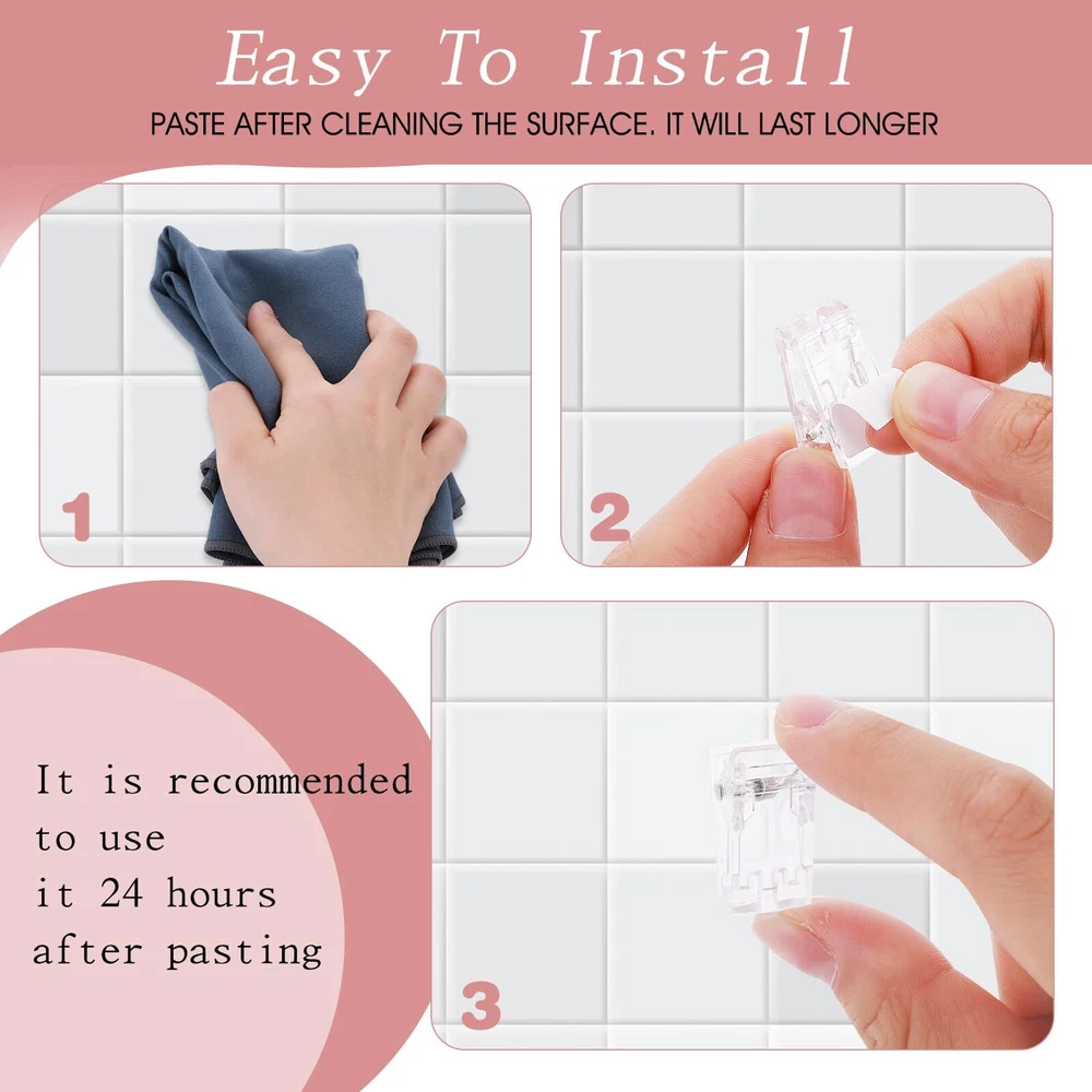 Feature: Do you need a convenient way to hang your blanket on the wall? Do you need some little clips to make hanging your towel poster easier on the wall? I think our self-adhesive small clip will not only meet these needs of yours, but also make you feel that it is of high quality and affordable price. Because these double-sided tape spring clips are plentiful and easy to replace, these self-adhesive clips are great for clamping things to your wall. Such as photos, scrapbooks, posters, papers, etc. so you can easily access what you want and keep your house tidy. Product Information: Product Name: Self-Adhesive Spring Clip Color: Transparent Material: Plastic Size: 2.55*1.3*1.15cm/1*0.51*0.46inch Net Weight: 31g Gross Weight: 32g Packaging: Bagged Packing Size: 15*10.5*1.5cm Package Included: 15 PCS Rectangular Wall Clip High Quality Material: Our wall clips are made of high quality plastic, sturdy and durable. In addition, the rust-free wire spring can increase its durability and service life, it is comfortable to hold, durable, easy to use and store, giving you a good use experience Self-Adhesive Design: Our wall clips are self-adhesive, each clip uses a good adhesive and is very sticky. Strong and not easy to fall off, it allows you to fasten the clip quickly and easily, which is very convenient for our daily use Simple and Easy to Use: This tapestry clip is very simple to use, you only need to peel off the protective paper on the back, and then you can directly stick it on any clean and smooth wall or other places you want, and the double-sided tape clip can be quickly fixed . It is recommended to hang things after pasting for 24 hours for better adhesion Sufficient Quantity: you will get 15 double-sided tape spring clips, size 1*0.51*0.46inch. So many compact clothespins are well made, small in size and light in weight, enough to meet your daily needs and replacement, bringing convenience to your life Versatility: These adhesive clips are versatile, you can stick them smoothly anywhere, suitable for walls or other clean and smooth surfaces. Suitable for photo wall decoration, home or office decoration, Christmas tree decoration, etc