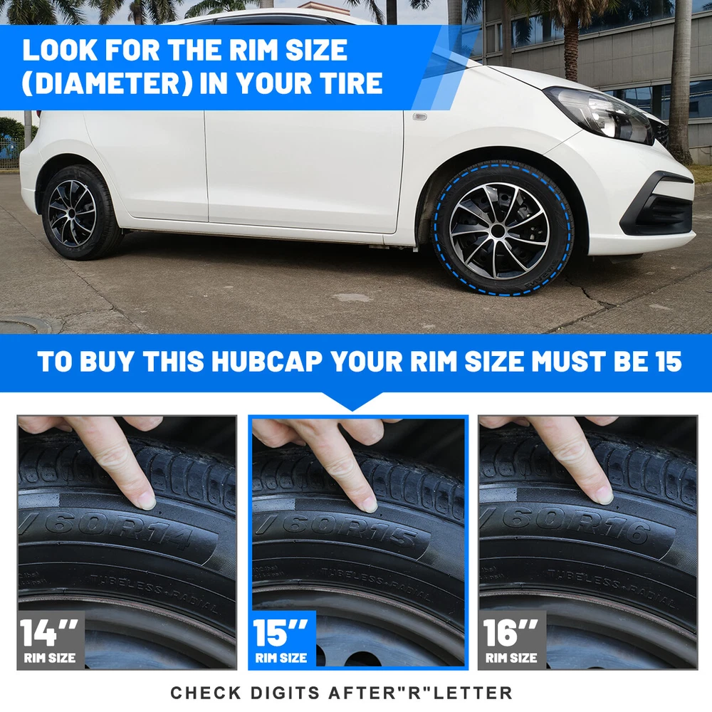 15" Set of 4 Wheel Covers Snap On Full Hub Caps fit R15 Tire & Steel Rim Feature: π Please Ensure to Check your Tire/Wheel Size Before Purchase! Designed for (P15) 15" Stock Steel Wheels and will not fit over alloy wheels π For Replacement with Fast & Easy Snap-on Installation - Made from Premium ABS Material β Lab & Road Tested for Performance and Ultimate Durability π Adjustable Retention Rings assures Firm Grip Gives Support to the Hubcaps Making Sure They Stay in Place. Locate the Curve on the Retention Ring and Match to the Tire Air Valve to Install π Installation Instructions & Video Available - Please refer to the Video and images available as well as detailed instructions below for assistance π Wolfx Wheel covers fit most models of vehicle brands including Acura, Chevrolet, Dodge, Ford, Honda, Hyundai, Kia, Mazda, Mitsubishi, Nissan, Subaru, Toyota, Volkswagen and more Specification: Quantity: 4 PCS Material: ABS Color: Matte & Black Lacquer Wheel Size: 15 inch Finish: Glossy Placement on Vehicle: Front/Left/Rear/Right Package Includes: 4* Wheel Cover Hubcaps Payment Delivery details Terms of sales About us Contact us Payment π We accept PayPal (Recommended), credit card, VISA, Google Pay & Discover etc. π Please submit your payment within 7 days after your purchase. π If not, eBay will automatically open an Unpaid Item Dispute on our behalf if the item(s) are not paid within 7 days. Delivery details π Please double check your delivery address and contact information. π All items will be shipped within 1 business days after payment received. π Tracking numbers will be easily accessible ASAP they are created and processed. Terms of sales π Free 30 days Return, we will cover the return post fee. π If a defective product was received, please do not hesitate to message us via eBay message. π We will response in 24 hours in business to resolve the problem π We stand behind our products. Items can be returned for exchange or full refund within 30 days from the date you receive. About us π Wolfstorm has a huge warehouse and office located in the United States. π All US domestic 48 states customers are able to benefit from the FREE SHIPPING services. π Our experienced, professional customer service representatives offers prompt and courteous service. π Best quality products, outstanding services and professional experience keep our customers. Contact us π Please feel free to contact us if you have any problems. π Emails will be replied within 24 hours in working days. π After hours emails will be replied on the next business day. On Dec 29, 2024 at 19:54:13 PST, seller added the following information:
