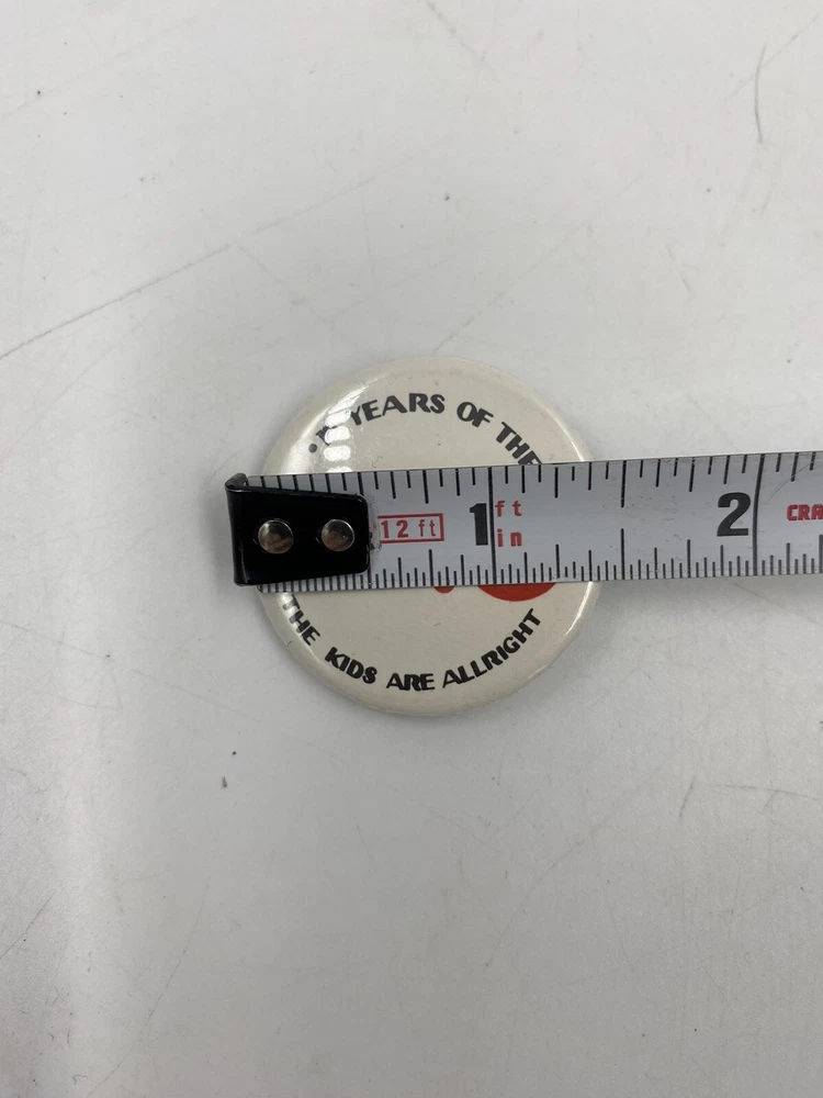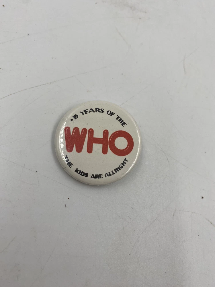 15 Years of the WHO The Kids are Allright Pin 1.5”x1.5". Does show signs of age and use but in overall good condition. You get the actual item pictured so please look at all photos and ask any questions before purchase.