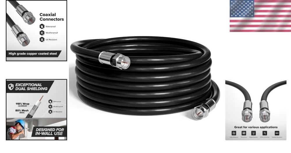 150 FT RG6 Dual Shielded Coaxial Cable - Indoor/Outdoor, High Speed Internet ‹ › ‹ › ‹ › ‹ › ‹ › ‹ › ‹ › ‹ › ‹ › 150 FT RG6 Dual Shielded Coaxial Cable - Indoor/Outdoor, High Speed Internet Features: Tri-Shield RG6 Coax Cable with Male F-Pin Connectors: Supports bi-directional data transmission between devices with zero distortion or signal loss. Solid Build: Equipped with an 18 AWG center conductor crafted from copper-coated steel, a flexible UV-resistant PVC outer jacket, and two 360-degree compression connectors for maximum reliability. Waterproof Connectors: Features fittings with a redundant double seal at each end, creating a solid design that prevents loosening or breaking. Long-Lasting Construction: Heavy-duty RF coaxial cable suitable for both indoor and outdoor use, complete with weatherproof connectors that endure extreme temperatures. Diverse Compatibility: This 75-ohm coaxial cable is designed to work seamlessly with a wide array of devices, including cable modems, televisions, satellite receivers, antennas, and other RG6 F-type devices. Benefits: Ensures clear, uninterrupted data transmission for all your media needs. Built to withstand the elements, perfect for outdoor installations without compromising performance. High construction quality guarantees longevity and reliability. Universal compatibility for hassle-free setup across various devices. Why choose our RG6 Dual Shielded Coaxial Cable? If you're seeking a reliable, high-speed connection for your indoor and outdoor setups, look no further than our 150 FT RG6 Dual Shielded Coaxial Cable. Boasting a solid build and waterproof connectors, this cable is designed to resist the elements while delivering exceptional performance without signal loss. Don't compromise on quality or connectivity - elevate your internet and media experience today by choosing our premium coaxial cable! Shipping Free & Fast Shipping - We offer free shipping to most of the USA with a normal delivery time of 3-10 businessdays. However, due to various situations, additional delivery time (up to 3 weeks) may be required for some items. Alternative Carriers - We may use alternative carriers (e.g. USPS, FedEx, UPS, etc.) to ensure your package arrives safely and on time. Due to the use of multiple carriers, we are unable to provide a tracking number automatically. Handling Time - Orders are processed and shipped within 1-5 business days of receiving cleared payment. Shipping Restrictions - Shipping to Alaska, Hawaii, Puerto Rico, Guam, and other US territories may incur shipping charges or delivery restrictions. Please contact us before ordering, or your order can be refunded/cancelled. State Restrictions - There may be restrictions based on your state of purchase. For example, certain items may not be shipped to California due to state regulations. Contact for Tracking Updates - If you require tracking updates or have any concerns about the delivery of your order, please feel free to contact us, and we will be happy to assist you. Return Please see our ebay return policy. We do not accept return on most products. This is to avoid customers mis-using ebay returns. All sales are final. Please be sure to check the return policy listed at the top of the listing. In rare cases, we may accept returns, if the buyer pays both ways shipping and 20% restocking fee. If you are un-sure of return policy of a particular item, please ask before buying. Payment We accept all major credit cards, PayPal, and Apple Pay for your convenience. Your payment information is secure and encrypted to ensure a safe and seamless transaction. Please complete your payment within 3 days of purchase to avoid any delays in shipping. Feedback Your feedback is extremely important to us. We strive to provide the best products and customer service possible. If you are satisfied with your purchase, please take a moment to leave us a positive review. If you have any concerns or issues with your order, please contact us before leaving negative feedback. We are committed to resolving any problems and ensuring your satisfaction. Contact Us If you have any questions or concerns, please feel free to reach out to our customer support team. You can contact us through the eBay messaging system. We are available Monday to Friday, 9:00 am to 5:00 pm EST, and we will do our best to respond to your inquiry within 24 hours. Buy it now and enjoy a pleasant shopping experience! UPC: Not Set Unit Quantity: 150 FT Item Height: Not Set Item Length: Not Set Item Width: Not Set Connector A: F Connector Male Connector B: F Connector Male Features: Weather Proof,High Speed Internet,Dual Shielded,UV Resistant,CL2 Rated,Low-Loss,Flexible PVC Outer Jacket,Waterproof Connectors,Heavy-Duty Construction Compatible Brand: Not Set Compatible Model: Universal,Cable Modems,Televisions,Satellite Receivers,Antennas,RG6 F-Type Devices Brand: Unbranded Type: Coaxial Cable Cable Length: Not Set Connection Split/Duplication: 1:1 Output Voltage: Not Set MPN: Not Set Color: Black Gauge: 18 AWG Fiber Type: Not Set Manufacturer Warranty: Not Set