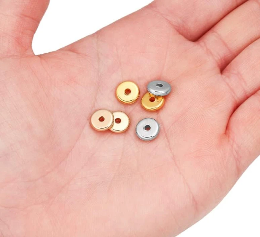 150 PCS 8Mm Silver Flat round Spacer Beads Disc Loose Jewelry Making Package includes : Duehut 150 pcs silver flat plastic spacer beads. Size: 8mm diameter with a 2mm hole. Material : Spacer beads are made from CCB, smooth surface, shiny in appearance, light weight, small and exquisite. Put them combined with loose beads free into your favorite necklace, bracelet and another fashion jewelry. Match with Heishi polymer clay beads rhinestones, gemstone beads, and large-hole beads, you can make your individual and distinctive earrings, bracelets, necklaces and another fashion jewelry,which is idea for various handmade jewelry making crafts. Specification : Color : Silver Material: plastic Size: 8mm diameter with a 2mm hole Quantity: 150 pieces Package Content 150 x Silver Metal Spacer Beads 1.69 inches x 2.4 inches x 0.75 inches. Weight: 0.317 oz Item model number GJ134 Number of Pieces 150 Color Silver Material Plastic Item Weight 0.317 ounces Shape Round Size Small Package Dimensions 2.4 x 1.69 x 0.75 inches