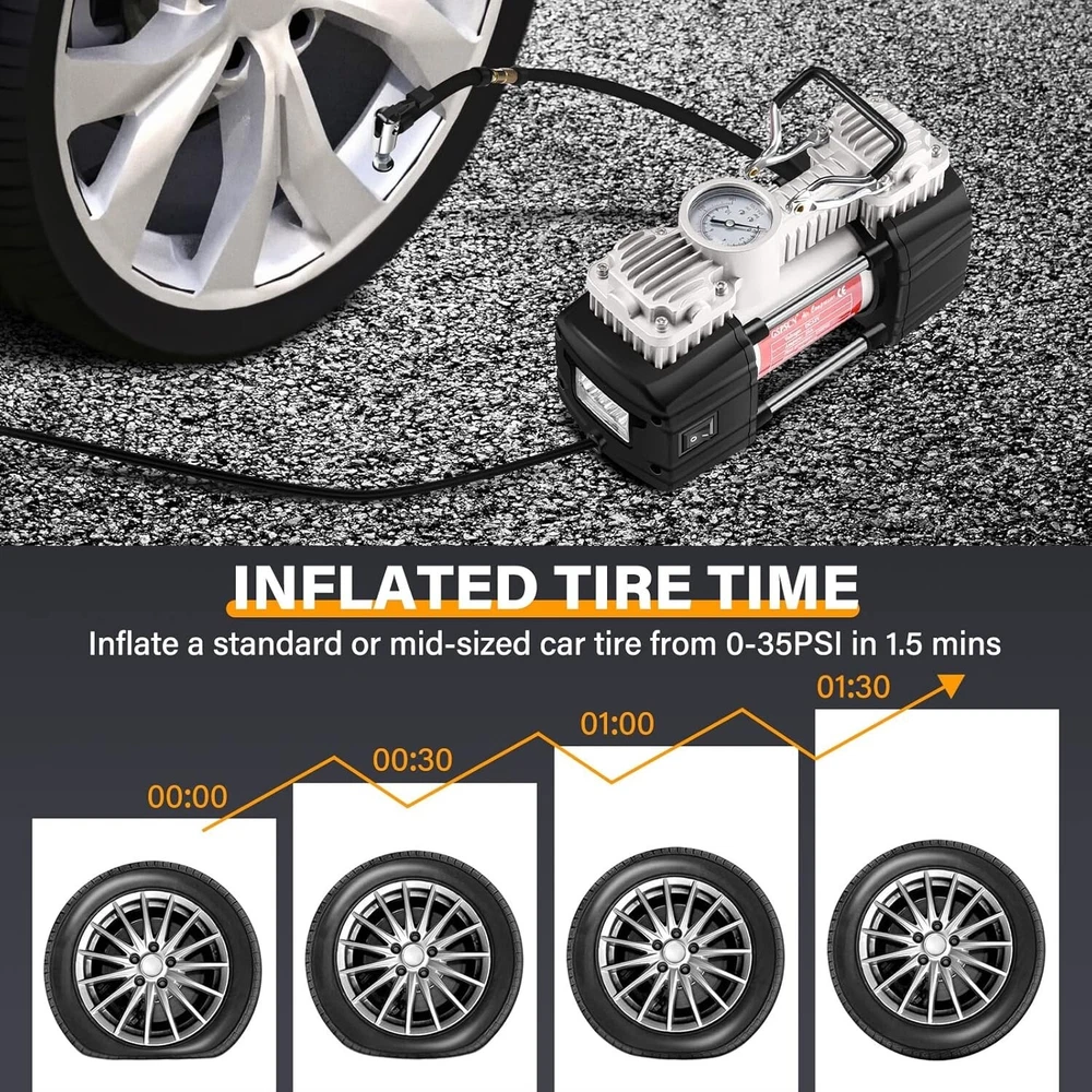 150 PSI Double Cylinder Tire Inflator with LED Light - Fast Inflation for Cars ‹ › ‹ › ‹ › ‹ › ‹ › ‹ › ‹ › ‹ › ‹ › ‹ › 150 PSI Double Cylinder Tire Inflator with LED Light - Fast Inflation for Cars Key Features: Maximum pressure of 150PSI with an airflow rate of 2.12CFM@0PSI. Inflates a standard vehicle tire in just 1.5 minutes (195/65/R16, 0-35psi). Double cylinders produce an impressive flow of 70L/min, making it 4 times faster than standard inflators. Equipped with bright, long-lasting LED lights for easy operation in low-light conditions and emergency visibility. Compatible with a wide range of vehicles including SUVs, trucks, vans, RVs, cars, and more. Comes with multiple adapters for various nozzles, perfect for inflating tires, air beds, and more. Includes an 11.5ft extension air hose, a locking air chuck, nozzle adapters, spare fuse, heavy-duty cables and clamps, and a travel carry bag. Compact size of 8.5” (L) x 6.9” (H) x 3” (W) for effortless portability. Why Choose Our Tire Inflator? Experience the confidence that comes with rapid and efficient tire inflation! Our 150 PSI Double Cylinder Tire Inflator is specifically engineered to deliver speed and reliability, effortlessly inflating your vehicle's tires while you’re on the go. With its powerful double cylinders and innovative design, you can quickly get back on the road in no time. Stay prepared for any journey with the added convenience of built-in LED lights, so you can address emergencies safely after dark. Ideal for road trips or daily commutes, this inflator’s compact and portable design lets you have peace of mind wherever you roam. It also makes a thoughtful travel gift for friends and family, ensuring they're equipped to maintain their vehicles in top condition during their adventures. Don’t settle for ordinary—choose superior speed and reliability with our 150 PSI Double Cylinder Tire Inflator today! Shipping Free & Fast Shipping - We offer free shipping to most of the USA with a normal delivery time of 3-7 days. However, due to the current situation, additional delivery time (up to 3 weeks) may be required for some items. Alternative Carriers - We may use alternative carriers (e.g. USPS, FedEx, UPS, etc.) to ensure your package arrives safely and on time. Due to the use of multiple carriers, we are unable to provide a tracking number automatically. Handling Time - Orders are processed and shipped within 1-2 business days of receiving cleared payment. Shipping Restrictions - Shipping to Alaska, Hawaii, Puerto Rico, Guam, and other US territories may incur shipping charges or delivery restrictions. Please contact us before ordering, or your order can be refunded/cancelled. State Restrictions - There may be restrictions based on your state of purchase. For example, certain items may not be shipped to California due to state regulations. Contact for Tracking Updates - If you require tracking updates or have any concerns about the delivery of your order, please feel free to contact us, and we will be happy to assist you. Return 30-Day Hassle-Free Returns - We want you to be completely satisfied with your purchase. If you are not, you can return the item within 30 days of receiving it for a full refund or exchange. Easy Return Process - To start a return, simply contact us and we will provide you with a prepaid return shipping label and detailed instructions. Restocking Fee - There are no restocking fees for returns. However, the buyer is responsible for return shipping costs if the return is not due to a seller's error. Refund Processing Time - Refunds will be processed within 5 business days of receiving the returned item in its original condition. Payment We accept all major credit cards, PayPal, and Apple Pay for your convenience. Your payment information is secure and encrypted to ensure a safe and seamless transaction. Please complete your payment within 3 days of purchase to avoid any delays in shipping. Feedback Your feedback is extremely important to us. We strive to provide the best products and customer service possible. If you are satisfied with your purchase, please take a moment to leave us a positive review. If you have any concerns or issues with your order, please contact us before leaving negative feedback. We are committed to resolving any problems and ensuring your satisfaction. Contact Us If you have any questions or concerns, please feel free to reach out to our customer support team. You can contact us through the eBay messaging system. We are available Monday to Friday, 9:00 am to 5:00 pm EST, and we will do our best to respond to your inquiry within 24 hours. Buy it now and enjoy a pleasant shopping experience! UPC: Not Set Model: Not Set Item Width: Not Set Item Length: Not Set Item Height: Not Set Item Diameter: 3 in Item Weight: 3.2 kg Unit Quantity: 1 Set Includes: Pressure Gauge,tire inflator,extend air hose,inflation adapter,car battery clamp,portable bag,locking air chuck Brand: Unbranded Type: Piston Compressor Portability: Portable Voltage: 12 V Power Source: Battery Powered Maximum Working Pressure: 150 Psi Tank Capacity: Not Set Lubrication Type: Not Set Horse Power: Not Set Tank Material: Not Set Flow Rate: Less than 100 L/min MPN: Not Set Color: Silver Country/Region of Manufacture: Not Set Manufacturer Warranty: Not Set Unit Type: Unit
