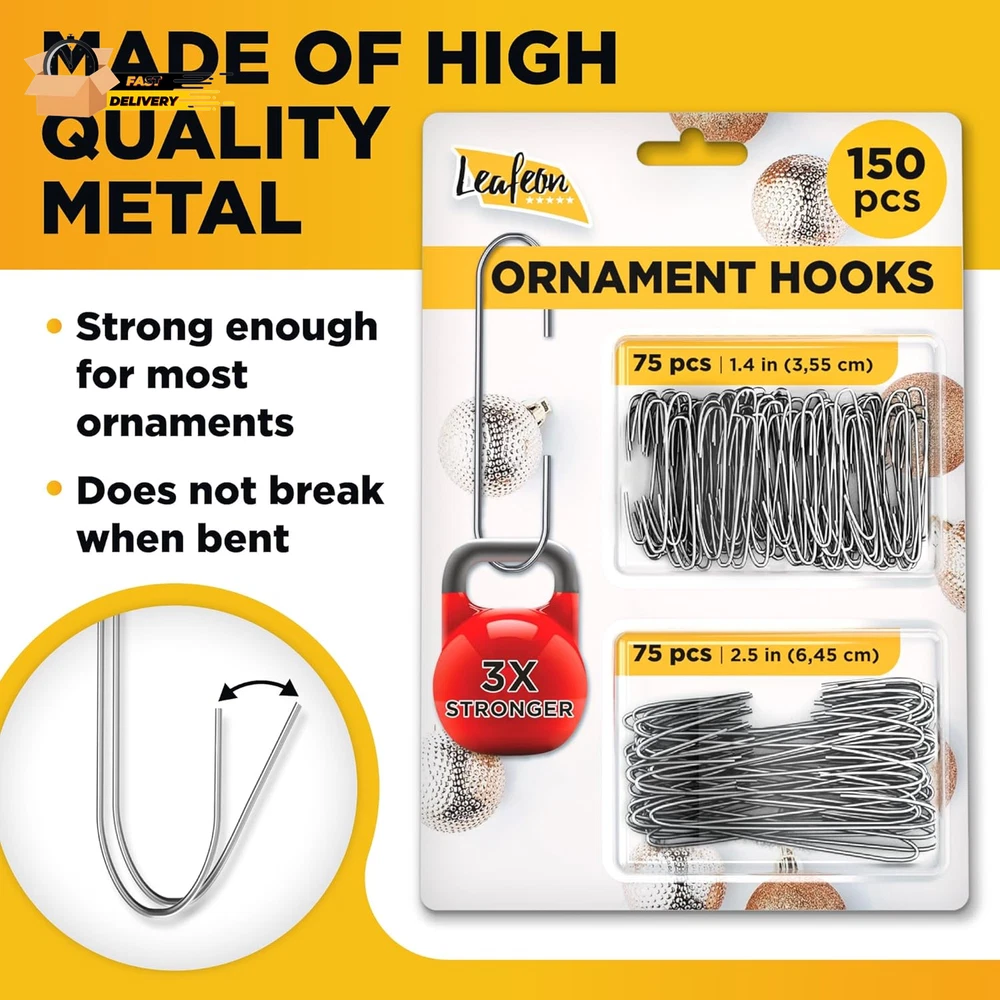 Store New Arrivals Add to Favorite View Feedback Contact 150 Pack Christmas Ornament Hooks β Great Xmas Ornament Hangers for Christmas Tree Decoration (Silver) Description Item dimensions L x W x H 2.5 x 0.2 x 0.05 inches Mounting Type Hook Item Dimensions 2.5 x 0.2 x 0.05 inches Color Silver Material Metal Material Type Metal Style 150 pcs SILVER Maximum Weight Recommendation 50 Ounces Item Weight 0.1 Pounds Number of Hooks 150 Recommended Uses For Product Decoration Number of Pieces 150 π INCLUDES: 150 Silver Metal Ornament Hooks. Great for usage during the Christmas decoration process. Use for both small and large ornaments. 2 Sizes Included: 75 pcs ΒΌβ hooks and 75 pcs Β½β hooks. π VERSATILE: Our silver Christmas ornament hooks are ideal for hanging Christmas ornaments, tree ornaments, Christmas decorations, easy for hanging or taking off the decorations from Christmas trees. π EXTRA STRONG: Ornament Hooks are made of strong iron, they are sturdy enough to hold up to 50 ounces. π REUSABLE: Christmas ornament hooks can be used an unlimited number of times. They are ideal Christmas ornament hooks for crafting. By adding ornament hangers to your hand-made ornaments or any Christmas ornaments you get an extra festive look. π We give 30 Days money back GUARANTEE. Product Description Easy to use Perfectly shaped hooks provide easy adjustment of each hook to the ornament. The easiest way to decorate your Christmas tree and stay assured that your ornaments will be hanging safely is to use Leafeon Ornament Hooks. Multi use These versatile ornament hooks can be used for various occasions, from Christmas and Easter to birthdays and Halloween. Their universal design makes them perfect for hanging decorations all year round, adding a festive touch to any celebration. Reusable Leafeon Christmas Ornament Hooks are made for years! You wonβt have to buy new hooks every time, thus save your money and time. Even if you change your ornaments, you can effortlessly take them off and adopt to your new decorations. High-Quality Metal Our ornament hooks are crafted from high-quality, corrosion-resistant metal, ensuring they remain rust-free over time. This durability allows you to reuse them year after year, keeping your decorations securely in place for every holiday season. ABOUT US We offer the best prices around on high quality products. Our E-store includes media such as books, movies, music and games while offering electronics, toys, sporting apparel, clothing, tools, general home, garden items and more. SHIPPING We are always working hard to ensure your package arrives as soon as possible. Please understand that some factors like weather, high postal traffic, and the performance of shipping companies are outside of our control. We offer free shipping to the lower 48 states and ship within 2 business days of payment, usually sooner. We do not accept P.O. Boxes. Please provide a physical address. For shipping outside of the continental USA, we only use eBay's Global Shipping Program.The item is shipped to KY and then sent to the rest of the world. International customers are responsible for all duties and taxes. Continue to check out in order to calculate costs for shipping the item to your country. Messages regarding eBay's Global Shipping Program MUST be directed at eBay EXCLUSIVELY. RETURNS We offer a 30-Day Return Policy on items which you are not completely satisfied with. You have the option for a full-refund or an exchange of the item. No returns are available on items shipped outside of the USA. PAYMENT We accept PayPal. CONTACT US This page content is yet to come Please ad us to your favorite seller and visit again later Thank You CUSTOMER SATISFACTION We try our very best to make sure every customer is completely satisfied. If there's a problem, message us! We're happy to help. WE ACCEPT Copyright Β© 2021 AutoDS. | All Rights Reserved