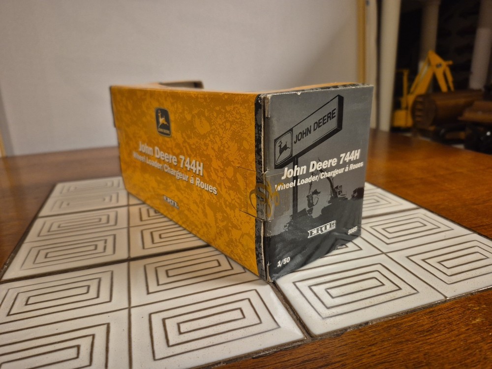 The ERTL John Deere 1998 1/50 Scale Wheel Loader 744H is a diecast toy featuring a yellow John Deere tractor in a scale of 1:50. Part of the ERTL Farm Country series, this toy is suitable for both boys and girls. Made in China in 1998, this collectible item is detailed and realistic, perfect for any farm vehicle enthusiast or toy collector.