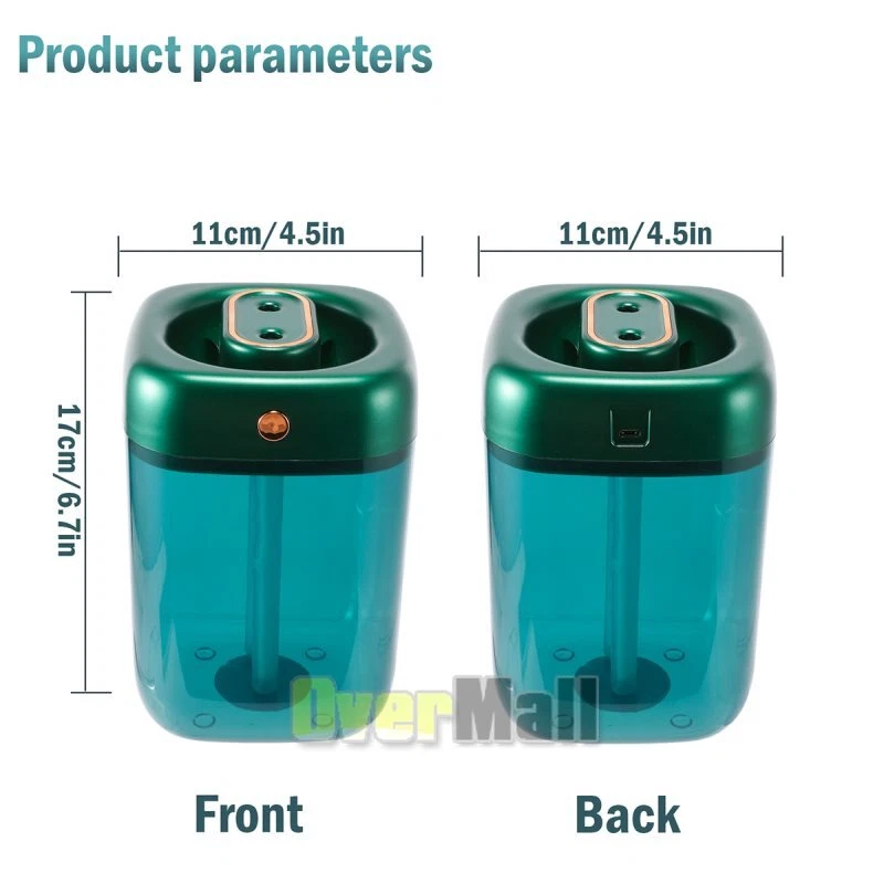 1500ML Humidificador de aire aroma de difusor de esencial para oficina en casa 1500ML Humidificador de aire aroma de difusor de esencial para oficina en casa BEST CUSTOMER SERVICE ON OUR sale2015express EBAY STORE↓ ↓ ↓ 〓SHIP From US Local Stock 〓FAST & Free, 1-6 Days Arrival 〓FREE Return, Seller Pay!! 〓LIFETIME Money Back Guarantee 〓LIFETIME Free Replacement Guarantee 〓LIFETIME Warranty 〓QUICKLY Reply within 24 Working Hours 〓 MOST orders ship within 1 business day with Tracking Number 〓 ANY PROBLEM please email us before feedback, thanks! Add our listing to Watchlist Or Add to Cart , you will get more discount!!! 1500ML Dual Spray Humidifier Feature: -- Large Capacity: 1500ml large capacity water tank, suitable for use in vehicles, homes, and offices. The top water filling design allows you to add water directly to the water tank, or you can open the lid to add water. -- Mini Portable: Made of ABS and PP materials, vertical oval design, small humidifier suitable for offices, bedrooms, bedside and travel, effectively alleviates the problem of dry skin, and can also promote the growth of indoor plants. -- Dual Spray Design: With dual spray humidification function, one-button operation, long press to turn on the night light function, more convenient for indoor and outdoor use, ultra-low noise, giving you a quiet and comfortable living space. -- Intelligent Timing: Dual spray mode automatically shuts down after 8 hours of continuous operation, intermittent spray mode automatically shuts down after 10 hours of continuous operation, wide water tank opening, easy to clean and replenish. -- Safe to Use: Multiple filtration systems can adsorb different types of bacteria and impurities, inhibit the growth of bacteria in water, and make it safer to use. Specification: Product model: 2022-1 Color: dark green Material: ABS+PP Power: 3W Input voltage: 5V-1A Input current: 500mA Water tank capacity: 1500mL Double spray volume: 100mL/H Control mode: button Charging method: USB interface Timing design: 8 hours/10 hours Product size: 11.5*11.5*17cm/4.5*4.5*6.7inch Package includes: 1*Humidifier 1*Instruction Manual 1*USB Charging Cable ================================== 12V Mini Car Humidifier Feature: -- Mini, stylish, simple appearance, plug and play, easy to carry, very suitable for cars. -- 180-degree rotation at any angle, touch switch, suitable for use in autumn and winter, automatic power-off protection after working for 2 hours, safer to use. -- Water-soluble essential oil can be added, which volatilizes evenly, not only can sterilize and purify, but also has moisturizing effect, can remove static electricity and dust in the car, and make the air in the car better. Specification: Material:ABS+PP+electronic components Working voltage:DC 12V Working current:130mA-150mA Power:1.5W-2W Water tank capacity:50ml Spray amount:25ml/hour Working time: 2 hours Working temperature: 10-40℃ Angle: 180° Function: aromatherapy/humidification/purification Product size:57*56*164mm(L*W*H)/2.24*2.2*6.46inch Package includes: 1x Car Humidifier 1x User Manual