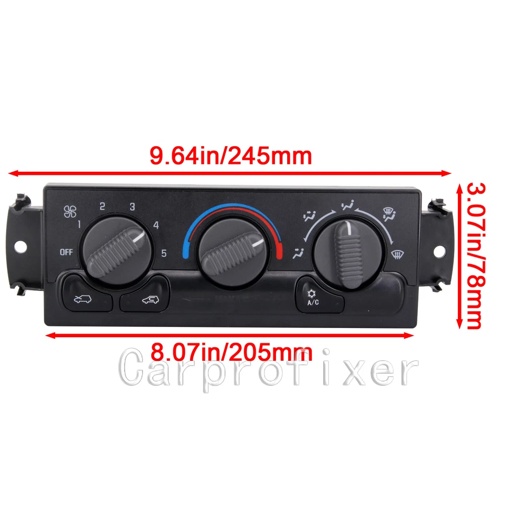 Part Number: 15054697 15753264 19244873 9361355 599-266 599-218 15054698 15753263 16221605 19244874 9361345 Compatible with: For Chevy 2000 Chevy Tahoe 2002 Chevy Avalanche 1500 2002 Chevy Avalanche 2500 1999 Chevy Silverado 1999-2002 Chevy Silverado 1500 2001-2002 Chevy Silverado 1500 HD 1999-2002 Chevy Silverado 2500 2001-2002 Chevy Silverado 2500 HD 2001-2002 Chevy Silverado 3500 2000-2002 Chevy Suburban 1500 2000-2002 Chevy Suburban 2500 For GMC 2000 GMC Yukon 2000-2002 GMC Yukon XL 1500 2000-2002 GMC Yukon XL 2500 1999-2002 GMC Sierra 1500 2001-2002 GMC Sierra 1500 HD 1999-2002 GMC Sierra 2500 2001-2002 GMC Sierra 2500 HD 2001-2002 GMC Sierra 3500 Package included: 1x A/C Heater Climate Control Module Panel Switch 15054697 HVAC Climate Control Module Panel Fits Chevy GMC Silverado Sierra 1500 15054697 15753264 19244873 High Quality With Fast Shipping You will received everything shown in the pictures. Part Number: 15054697 15753264 19244873 9361355 599-266 599-218 15054698 15753263 16221605 19244874 9361345 Compatible with: For Chevy 2000 Chevy Tahoe 2002 Chevy Avalanche 1500 2002 Chevy Avalanche 2500 1999 Chevy Silverado 1999-2002 Chevy Silverado 1500 2001-2002 Chevy Silverado 1500 HD 1999-2002 Chevy Silverado 2500 2001-2002 Chevy Silverado 2500 HD 2001-2002 Chevy Silverado 3500 2000-2002 Chevy Suburban 1500 2000-2002 Chevy Suburban 2500 For GMC 2000 GMC Yukon 2000-2002 GMC Yukon XL 1500 2000-2002 GMC Yukon XL 2500 1999-2002 GMC Sierra 1500 2001-2002 GMC Sierra 1500 HD 1999-2002 GMC Sierra 2500 2001-2002 GMC Sierra 2500 HD 2001-2002 GMC Sierra 3500 Package included: 1x A/C Heater Climate Control Module Panel Switch Note: Communication is the best way to solve the problem. If you have any problems after purchasing, please contact us in time, before opening return or case Please BE AWARE that the vehicle compatibility list on eBay may not be 100% accurate. Please be very careful to check our photos, make sure the photos showed is the same as you wanted. Please compare the part number with your original One before purchasing! We will NOT pay for your installation fee or return shipping fee caused by incompatibility! If the item can not work properly for you, please contact our Customer Service before you open the case via e-bay or pay-pal. Please contact us first when return, exchange and refund is required. Any direct return of purchased items will not be processed. Payment Delivery details Terms of sales About us Contact us Payment We currently accept Paypal ONLY! Delivery details Carprofixer locates in CA, all items ship from California. It usually takes 3-7 business days to arrive depends on the shipping method. If buyer ordered the wrong part or wouldn't want it anymore, we would charge 15% restocking fee. Terms of sales Feedback from our valued customers are highly appreciated! If there is any problem with our product or servie, please contact us through ebay message before leaving any negative feedback! We promise we will solve every issue you ever encounter anytime! About us Carprofixer is a professional retailer and manufacturer on automotive parts! Contact us Please contact us through ebay message. We will get back to you within 8 hours from Monday to Sunday! Brand Carprofixer Features Durability Tested Manufacturer Part Number 15054697 15753264 19244873 9361355 599-266 OE/OEM Part Number 15054697 15753264 19244873 9361355 599-266 Color Black Interchange Part Number 599-218 15054698 15753263 16221605 Items Included 15054698 15753263 16221605 19244874 9361345 Material Plastic Manufacturer Warranty Yes Fit For 1999-2002 Chevy Silverado 1500 2500