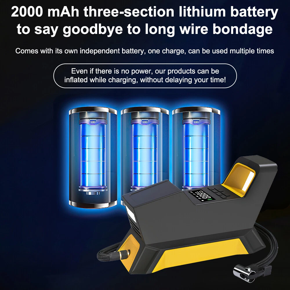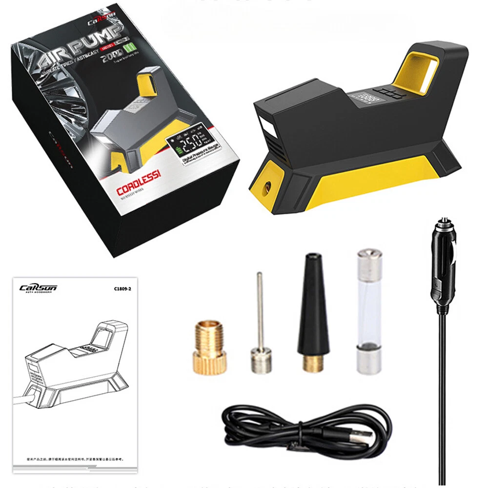 Store Categories Store Categories Other Product Description Features: Rapid Inflation: Achieve 30-second rapid tire inflation. With full stop and strong power, the inflation speed is significantly increased. One-Button Preset: Fully automatic operation with a powerful function. Anyone can accurately inflate the tire with ease. Multi-Function: The air pump can be utilized in the following products: cars, battery cars, mountain bikes, bicycles, motorcycles, balls, balloons, life buoys, inflatable beds, and more. Cordless Charging: Equipped with 2000 mAh three lithium batteries, bid farewell to long-term constraints. With independent batteries, one charge enables multiple uses. Powerful Features: Upgraded chip protection ensures safety without harming the vehicle. Intelligent chip protection includes automatic power-off protection in case of overload, overcharge, and overdischarge. LED Lights: The auxiliary lighting enables visibility at night. No need for a separate flashlight to find the valve core when plugging in the power to illuminate. Low Decibels: The sound is lower than 80 DB (decibels) during use. Through multiple noise reduction processes, it remains calm and not harsh. Specification: Rated voltage :12V Rated current :≤8A Rated power :≤100w Air pressure flow :35L/ min Output pressure :150PSI Cylinder size :22MM Noise :80db Material :ABS+ alloy Charging time :2.5h Battery capacity :2000MA*3 Package Included: 1 x Inflator pump 3 x Inflator nozzle 1 x Charger cable 1 x Cigarette lighter 1 x Fuse wire 1 x User manual Payment Policy Shipping Policy Returns Policy Contact Us Payment Policy We accept payment via PayPal, DebitCard, Visa, MasterCard, Discover etc. Shipping Policy 1. We strive to ship all items within 1-2 business days of receiving payment. 2. Please make sure the correct Ship-To address is entered before checking out. Once the payment is completed, you may not be able to change the shipping address. 3. If there are any issu es with your order, including delayed delivery or loss, please don't hesitate to contact us. Returns Policy 1. We offer a 30-day free return policy for all purchases. 2. Please contact us first to arrange the return details for any items that need to be returned. 3. For any Exchange, Refund or Return, the item must be in its original condition, including the box, packaging, and all the accessories or gifts. Contact Us 1. Customer satisfaction is very important to us and our feedback rating reflects this satisfaction. If you have any question or concern, please contact us via eBay message. 2. We respond to all eBay messages as quickly as possible. There would be time difference, non-working hours or public holidays that have prevented us from making an instant response . Thank you for your patience and understanding. Copyright © 2023 Dianxiaomi