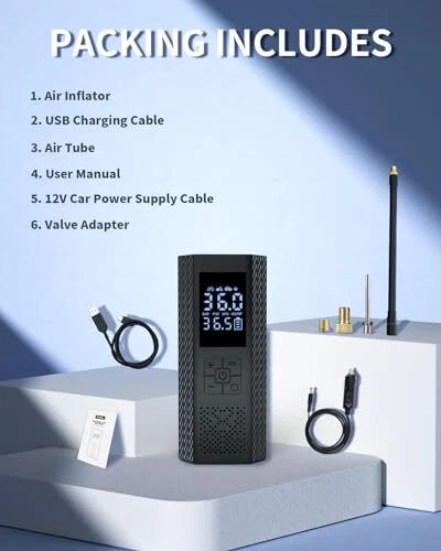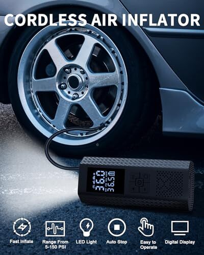 This portable tire inflator is a game-changer! Super easy to use—just attach, press start, and it quickly fills my car tires with precise pressure thanks to the clear LCD display. The cordless design and bright LED light make it super convenient, even at night. Fast delivery and great seller too! Highly recommend for cars and bikes.