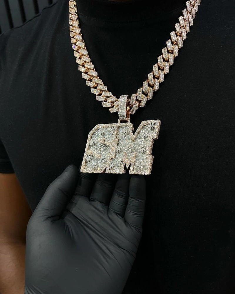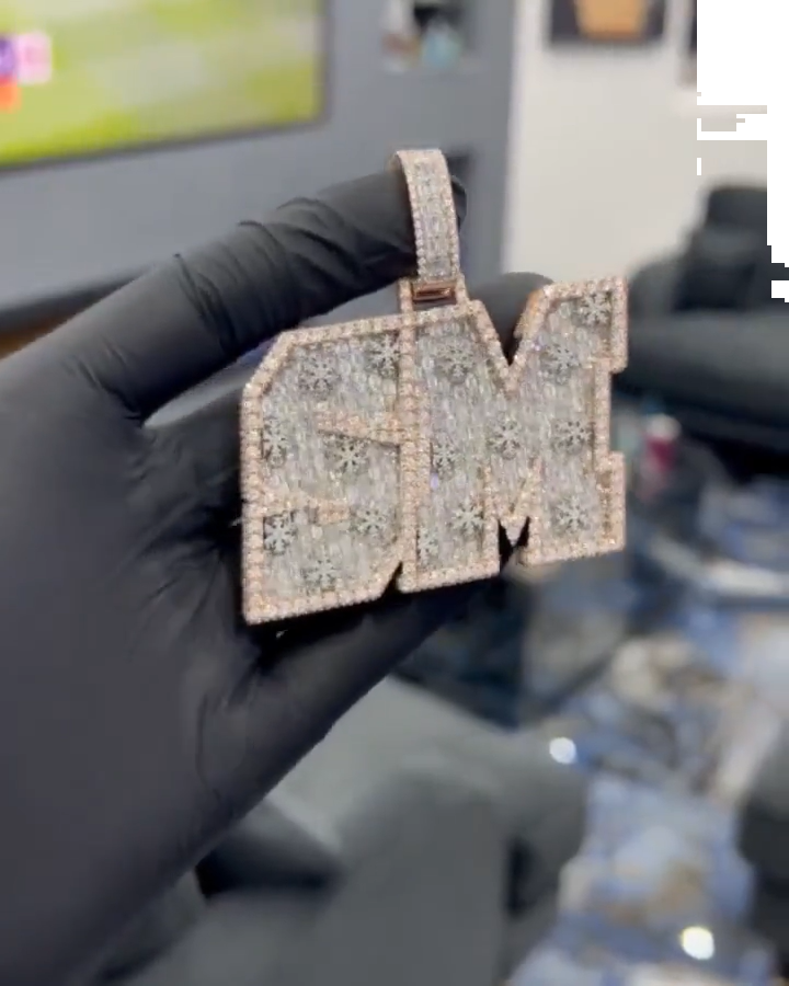 1.5-3.5in Custom D Letter Moissanite Hip Hop Rose Silver Pendant