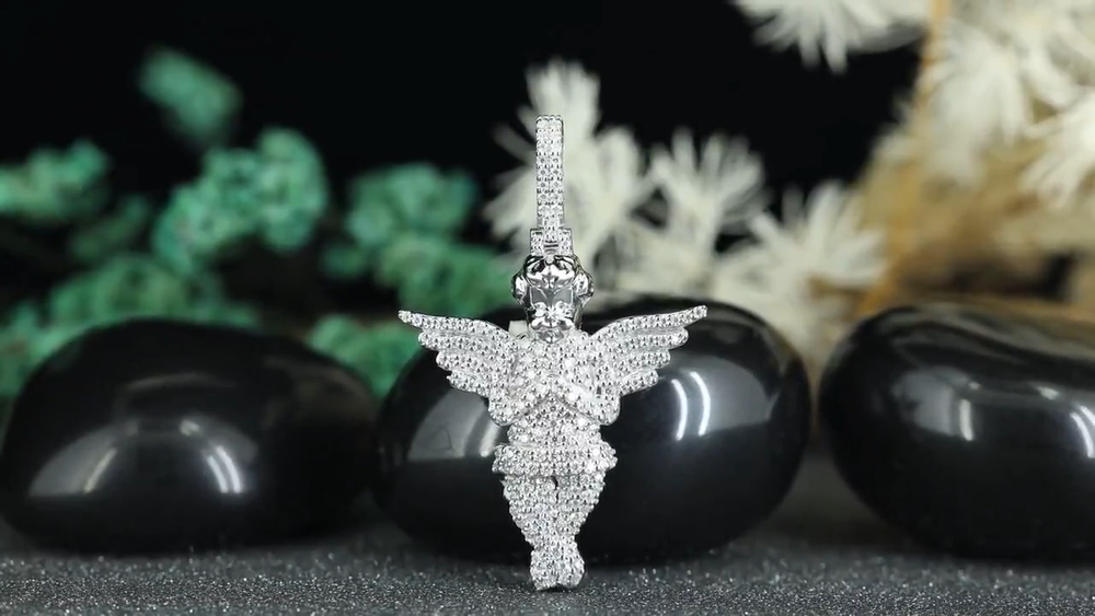 $ 105.081.5-3.5 Inch White Two-Tone Custom Hip Hop Moissanite-Free Diamond Pendant