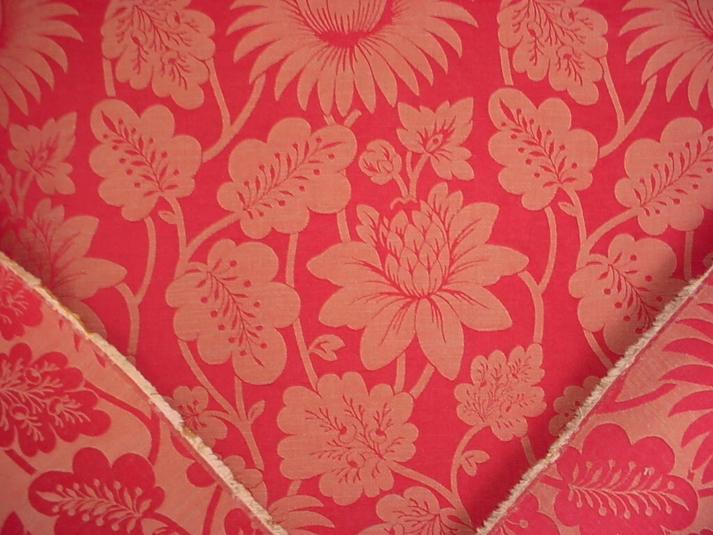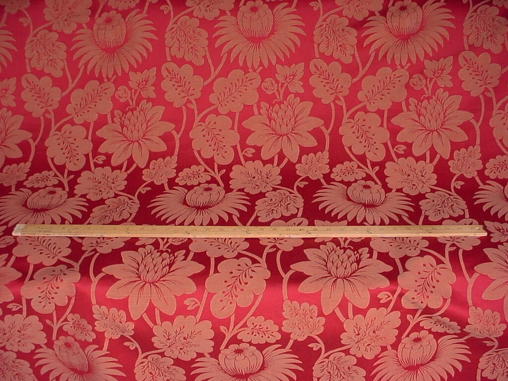 This offering is for a luxury material from a To the Trade Only design house, available here at a fraction of the retail cost. Design House: GP & J Baker Pattern Name: Hanbury Weave Pattern Number: J0515.470 Colorway: Red Collection: Length and Width: 15-3/8 yards by 53 inches wide A Brief Description: A exquisitely woven floral damask featuring sweeping and graceful designs in orangewood to reddish gold on a lively ruby red background. Smooth, buttery hand, wonderful drape and vibrant luster. Fiber Content: 52% viscose, 48% cotton Durability / Double Rub Count: 28,000 Weight per yard: 16 ounces per yard Repeats: Horizontal - Inches / Vertical - Inches Imported from: United Kingdom Value per yard: $190.00 Total Value of offering: $2,921.25 --------------- Our Friendly Fine Print: All material is first quality in perfect condition and is carefully stored in a smoke-free, pet-free environment. Shipping: Distinctive Threads offers free shipping to the lower US States as part of our value. If you are located outside the continental United States, please contact us for a shipping quote. Worldwide shipping is available via the United States Postal Service and FedEx International. Please feel free to message us for a shipping quote. A note about color: We describe the colors we see as best we can and hope the photos accurately depict the colors. Color is subjective and differs from person to person and lighting. We also offer samples for purchase. Thank you for stopping by our store. We look forward to providing you with an exceptional, unique and distinctive online experience.