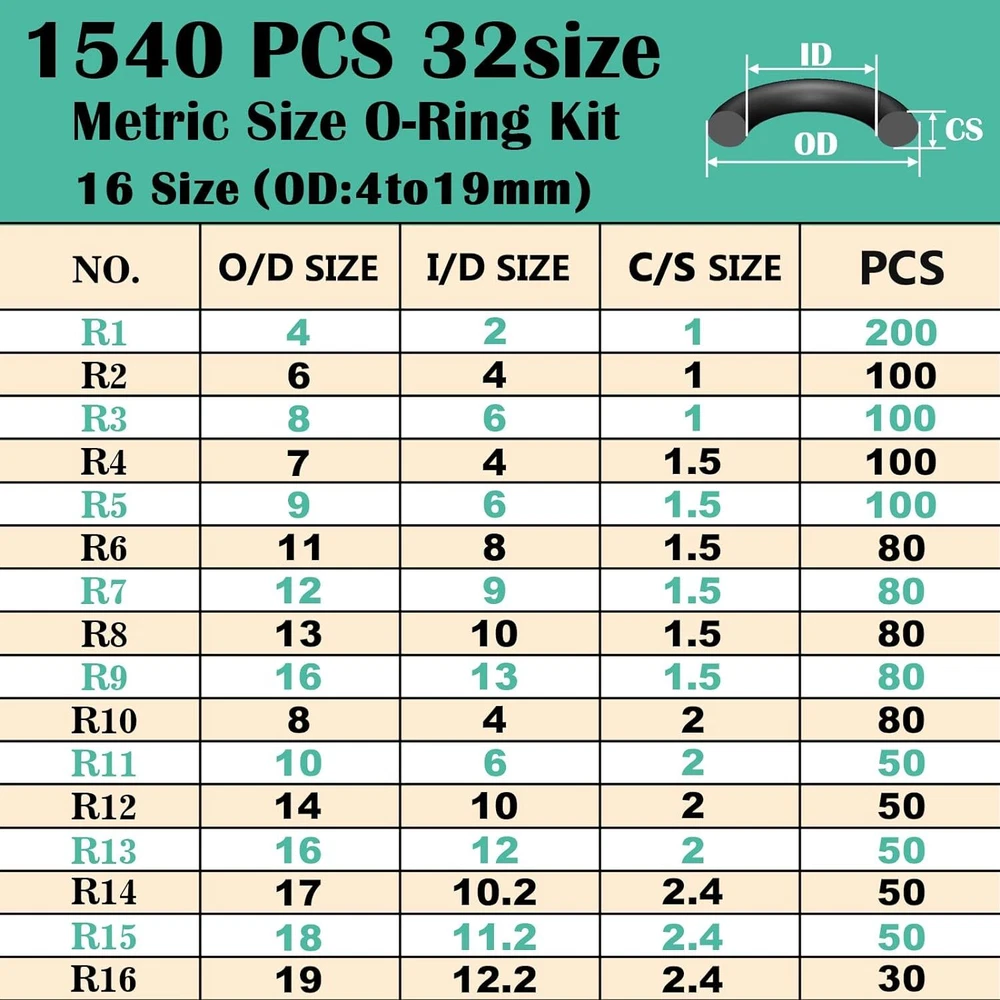 Multiple sizes:O-ring assortment kit contains standard 32 metric rubber O-rings with O-rings from 4 to 50 mm O.D. and 1 to 3.5 mm thick.Also comes with a 4-piece precision pick and hook set, including 1 pc. Full Hook; 1 pc. 45 degree pick; 1 pc. 90 degree pick; 1 pc. Straight picks. Can meet almost all your needs High quality material: O-ring bushings are made of commercial grade NBR material with a working temperature range of -40℉/-40℃ to 248℉/120℃. With excellent resistance to high and low temperatures, it is very suitable for thermal machinery, automotive, and faucet pipe sealing repair Wide applications: O-ring classification is very suitable for faucets, high-pressure washers, motorcycles, boats, car engines, pumps, solenoid valves, meters, sensors, mechanical bearings, pressure pipes and other accessories for sealing DIY repairs, Hook and Pick Set for clamps, wires, O-rings, gaskets and other precision parts Easy to use and store: Various o-ring kits, 32 sizes of o-rings are placed in order in a sturdy plastic storage box, each size comes with a detailed label paper, very easy to use, o-rings are stored in order of size, easy to retrieve and store Quality service: XBVV always provides excellent customer service so you can buy with confidence. If you have any questions about Metric O Ring Assortment Kits, please let us know and we will be happy to assist you Product Description XBVV has A Great Team of Carefully Selected Quality and Assured Products