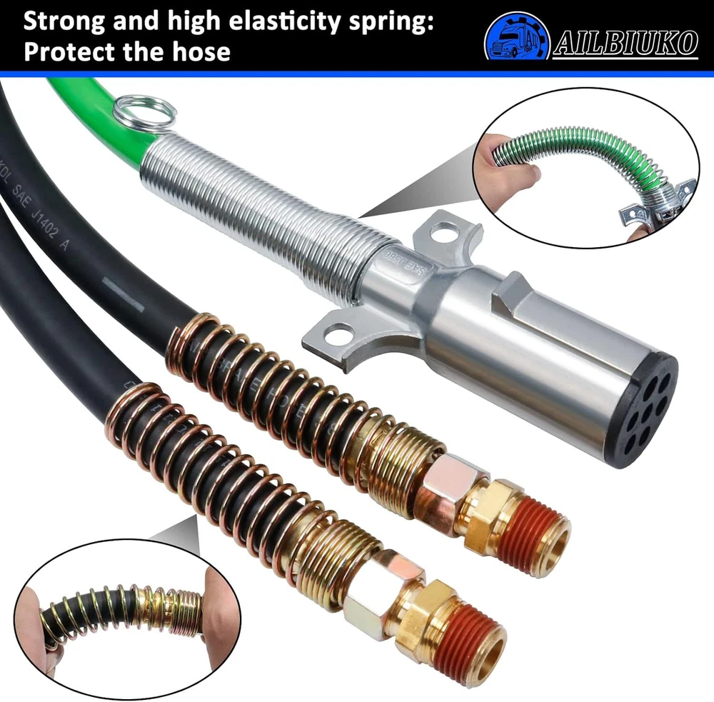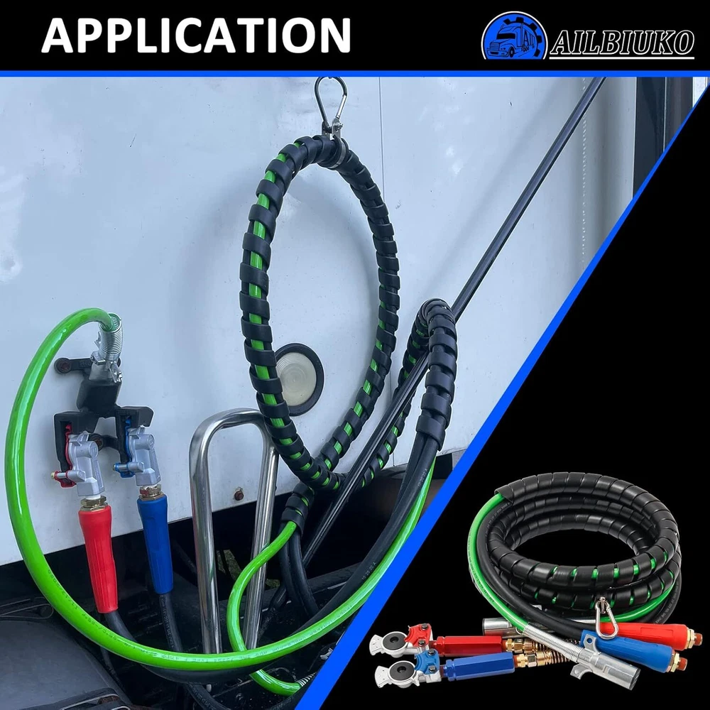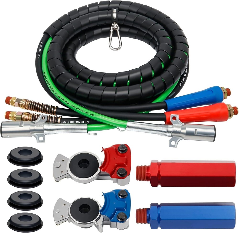 Pardical LLC Semi Air Lines Kit, 15FT 3-in-1 Airline Hose for Truck ABS 7 Way Electrical Cable with Glad Hands Hex Gladhand Handles Grips for Tractor Trailer PACKAGE INCLUDE: 15 Ft 3 in 1 ABS 7 Way Electrical Cable and Rubber Air Line Hose Wrap Assembly: [TRUCK/TRAILER CABLE for ABS SAE J2394 - 4/12-2/10-1/8 -65°C/-85°F (Green)] - [AIR BRAKE SAE J1402 A DOT TYPE S 3/8 I.D. (Black)] - [SAE J560 for Plug]; 1 Pair Glad Hands & amp; Extension Hexagonal Handles; 4 PCS Extra Gladhand Seals REPLACE FOR: 3 in 1 Semi Truck Power Cable: 302171,30-2171,11-8115; 169157,13S15401; 451098,455180DSET; OTR6818; PE13050. Glad Hands: Velvac 035042 035045, Tectran 1011EF 1011SF, Bendix 278850 278851, etc.Gladhand Grips: 12-600, etc 7-WAY PLUG: SAE J560 for Plug. Use the industry-standard zinc die-cast plug to efficiently transmit power from the engine to your trailer/truck. 7 Way electrical cable uses real high-quality copper so it has good thermal conductivity and electrical conductivity, ensuring the normal use of lights such as turn signals and brake lights during driving SPRING JOINT: The joint is not easy to damage. Brass connector: good anti-corrosive and anti-rust properties GLADHAND HANDSHAKE KIT: Constructed of die-cast aluminum with stainless steel wear plates, the port thread is machined by a high-precision CNC machine, ensuring a good sealing performance under strong pressure. The heavy-duty gladhand handles are thick enough to provide greater grip and are easier to install with the gladhand coupler Proposition 65 Warning for California Consumers WARNING: Labels on and packing slips in this package can expose you to chemicals including Bisphenol S (BPS) which is known to the State of California to cause reproductive harm. For more information go to www.P65Warnings.ca.gov Product Description Play Video MESSAGE US FOR ANY OTHER PARTS YOU NEED Shipping: Customers cannot specify the carrier of their choice. We do not offer combined shipping services. We ship only to the Continental 48 US States. All Shipping is free! NOTE: We apologize, but we cannot ship to California (CA), P.O. Boxes, APO/FPO, PO Boxes, Alaska, Hawaii, Puerto Rico and the U.S. Virgin Islands, Samoa or any US Protectorates Handling: Your order will be processed within the allotted time frame and will never exceed 3 Business days. Most items ship out 2-3 Business days after payment is received Return Policy: We offer a 30 days return policy from the receiving date. Please contact us for a Return Merchandise Authorization (RMA) number! If you have a problem or question regarding your transaction please contact us before leaving any type of feedback. We will work with you to resolve any problem you may have. Feedback When your order arrives and “there is no issue”, please leave feedback to notify us that you have received your item. We also leave you a positive feedback in return. Please give us a chance to work things out before leaving feedback or filing a case. Customer Support Our goal is to provide the best customer service. Please email us via eBay messaging. All inquiries are answered within 24 hours and our customer service team aims to resolve any issues quickly and effectively. Issues can be effectively addressed through simple communication. Listing and template services provided by inkFrog