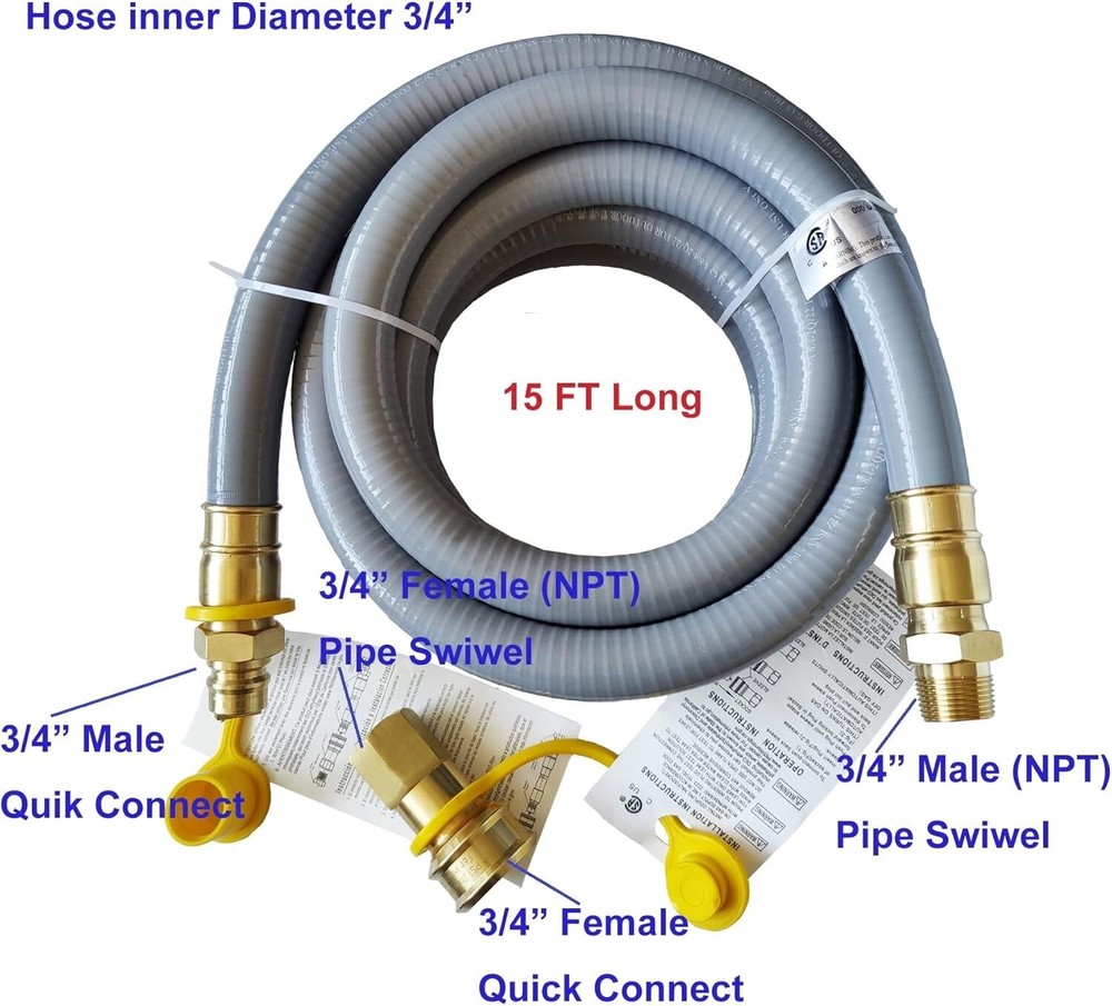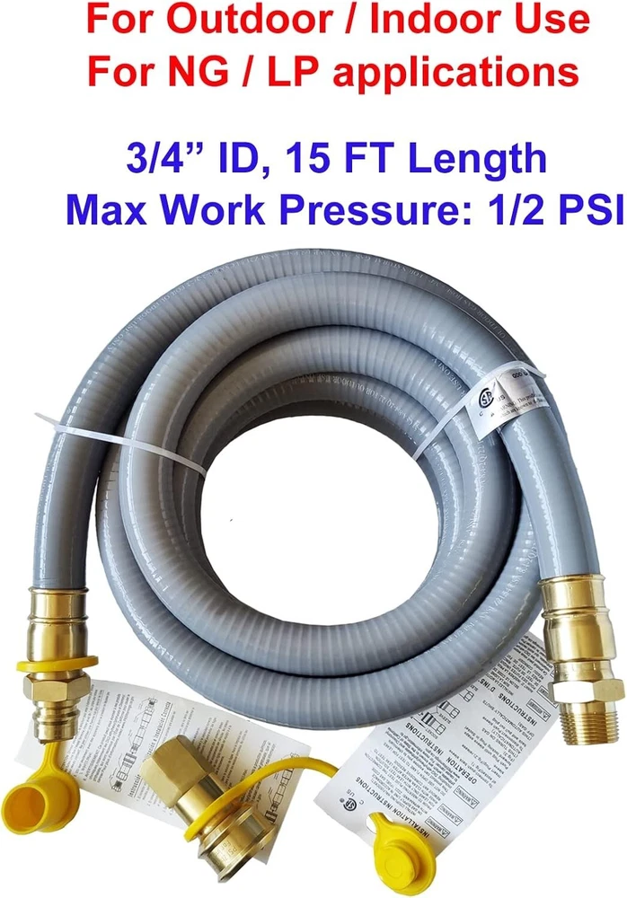 This gas hose kit is a game-changer! The 15ft length gives plenty of flexibility, and the brass connectors feel solid and leak-proof. Perfect for grills, heaters, or fire pits—handles indoor and outdoor use like a champ. Super easy to install with the quick-connect fittings, and the durable construction gives peace of mind. No more worrying about weak hoses—this one’s built to last!