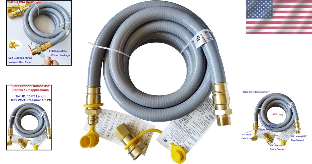 Durable 15FT Natural Gas Hose Kit with Brass Connectors for Indoor/Outdoor Use ‹ › ‹ › ‹ › ‹ › ‹ › ‹ › ‹ › ‹ › ‹ › Durable 15FT Natural Gas Hose Kit Elevate your gas-fueled experiences with our top-of-the-line Durable 15FT Natural Gas Hose Kit. Meticulously engineered for both indoor and outdoor applications, this kit is your perfect companion for reliable performance and safety. Specifications: Length: 15 FT, 3/4" ID Natural Gas Hose Fittings: 3/4" Male Pipe Swivel Fitting and 3/4" Male QD Plug Quick-connect Adapter included Solid brass connectors for superior durability Gas Flow: Up to 175000 BTU, Max Work Pressure: 1/2" PSI Safety Assurance: CSA certified for indoor and outdoor use, ensuring your peace of mind. Quick disconnect technology automatically shuts off gas flow when pipe is removed. Innovative Fittings: Self-sealing brass fittings eliminate the need for Teflon tape. No leaks guaranteed once fittings are tightened, offering uncompromised safety. Simplified Installation: Designed for ease, requiring minimal tools – just a 1-1/4" opening wrench. 15FT hose length allows for flexible setup, accommodating various configurations. Wide Applications: Compatible with natural gas and liquid propane appliances. Ideal for construction heaters, standby generators, fire pits, cooking appliances, and more. Durable against extreme weather, functioning between -40°F (-40℃) and 200°F (93.5℃). Why Choose Our Natural Gas Hose Kit? Don't compromise on quality and safety when connecting your gas appliances. Our 15FT Natural Gas Hose Kit is not only CSA certified for utmost reliability but is also engineered for effortless installation and leak-proof durability. With self-sealing fittings and robust brass construction, you can trust this kit to perform under pressure and provide you with the gas flow you need for any application. Choose excellence and peace of mind – order your Durable 15FT Natural Gas Hose Kit today! Shipping Free & Fast Shipping - We offer free shipping to most of the USA with a normal delivery time of 3-7 days. However, due to the current situation, additional delivery time (up to 3 weeks) may be required for some items. Alternative Carriers - We may use alternative carriers (e.g. USPS, FedEx, UPS, etc.) to ensure your package arrives safely and on time. Due to the use of multiple carriers, we are unable to provide a tracking number automatically. Handling Time - Orders are processed and shipped within 1-2 business days of receiving cleared payment. Shipping Restrictions - Shipping to Alaska, Hawaii, Puerto Rico, Guam, and other US territories may incur shipping charges or delivery restrictions. Please contact us before ordering, or your order can be refunded/cancelled. State Restrictions - There may be restrictions based on your state of purchase. For example, certain items may not be shipped to California due to state regulations. Contact for Tracking Updates - If you require tracking updates or have any concerns about the delivery of your order, please feel free to contact us, and we will be happy to assist you. Return Please see our eBay Return Policy. Thank you. Payment We accept all major credit cards, PayPal, and Apple Pay for your convenience. Your payment information is secure and encrypted to ensure a safe and seamless transaction. Please complete your payment within 3 days of purchase to avoid any delays in shipping. Feedback Your feedback is extremely important to us. We strive to provide the best products and customer service possible. If you are satisfied with your purchase, please take a moment to leave us a positive review. If you have any concerns or issues with your order, please contact us before leaving negative feedback. We are committed to resolving any problems and ensuring your satisfaction. Contact Us If you have any questions or concerns, please feel free to reach out to our customer support team. You can contact us through the eBay messaging system. We are available Monday to Friday, 9:00 am to 5:00 pm EST, and we will do our best to respond to your inquiry within 24 hours. Thank you for supporting our small family business! UPC: Not Set Unit Quantity: 15 FT Material: Metal,solid brass Compatible Brand: Not Set Compatible Model: Universal Brand: Unbranded Type: Gas Hose Color: White MPN: Not Set Year Manufactured: Not Set Item Depth: 5 in Item Diameter: 3 in Model: Not Set Item Height: Not Set Item Width: Not Set Country/Region of Manufacture: Not Set Item Weight: 8.49 lb Manufacturer Warranty: Not Set Unit Type: ft