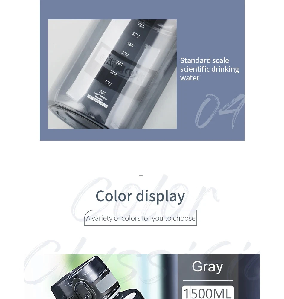 1.5L/2L Large Sport Water Bottle BPA-Free Leakproof Shaker for Outdoor Fitness 1000ml Water Bottle, 1 Liter Water Bottle, Large Capacity Water Bottle, Leakproof Drinking Bottle, BPA-Free Plastic Water Bottle, Travel Water Bottle, Reusable Gym Bottle, Frosted Plastic Bottle, Camping Water Bottle, Shaker Bottle with Lid, Sports Water Bottle 1000ml, Outdoor Portable Bottle, Eco-Friendly Water Bottle, Direct Drinking Water Bottle, School Office Bottle 1.5L/2L Large Sport Water Bottle BPA-Free Leakproof Shaker for Outdoor Fitness Product Description Reusability : Reusable Care Instructions : Hand Wash Only Boiling Water : Applicable (Can hold boiling water) Outdoor Activity : Camp, Sport, etc. Bottle Mouth : Wide Mouth Feature : Eco-Friendly, Stocked Thermal Insulation Performance : None Plastic Type : Tritan Shape : With Tea Infuser Applicable People : Adult Material Types Not Included : BPA Material : Plastic (Tritan) Water Flowing Method : Direct Drinking Style : SPORT Drinkware Type : Water Bottles Notes Please allow 1-3cm error due to manual measurement. Colors may slightly vary due to different lighting conditions. Ensure accurate measurements before purchasing. Package Includes Selected Variation Explore More from Our Store Visit Store