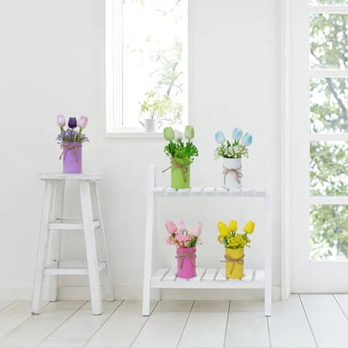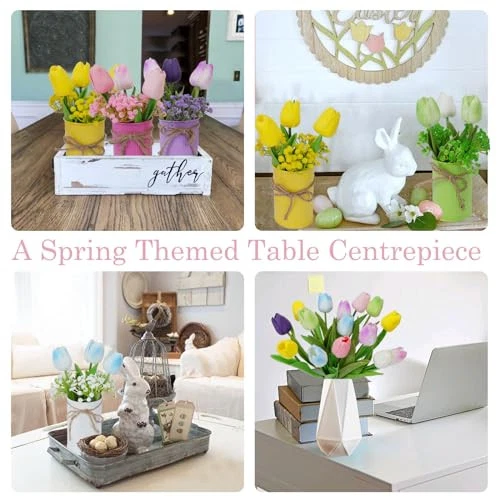 30 Days Return Policy Fast Delivery Trusted seller 15PCS Colorful Artificial Tulip with 5 Metal Pot Fake Tulips Potted Flowers in Vase for Table Decor Home Office Wedding Party Bouquet Arrangement Centerpieces Product Description Tulips Artificial Flowers in Vase: Includes 15 pcs multicolor artificial tulips flowers, 15 Pcs babys breath silk fake flowers, and 5 pcs galvanized metal pot vintage Size: Full height of the tulip: 13''; Each flower head diameter:1.5''; the babys breath is 6.3'', the galvanized metal pots is 4.33''in height, the width is 2.75''. The mini tulip artificial potted flowers look more real and suitable as a centerpiece Premium Materials: Artificial tulips and baby's breath flowers are made of soft Polyurethane (PU), stem is made of Plastic, with touch-like real feelings and flexibility. Metal pots are made of rustic galvanized tin, resistant to breakage and rust Spring Centerpieces for Tables: This fake flowers in pots can bring your space green and fresh, decorating your kitchen, living room, mason jar centerpiece for table, Easter table decor, wedding receptions, farmhouse, bring spring to your home Wide Use: The artificial tulips can compliment any space, perfect for Easter brunch centerpiece, spring floral arrangement, vase filler, spring table decor, wedding bouquets, office, party, hotel, cafes, celebration Shipping Returns Payment Shipping Shipping is FREE to all addresses other than APO/PO boxes in the lower 48 states. All our stock ships from US-based warehouses. Shipped via USPS or UPS (depending on location and package weight) Unless stated otherwise, all orders will ship within 24-72 hours of your payment being processed. Check our feedback to see the great reviews of FAST shipping we offer. Returns As our valued customer, we will do our best to make sure the product you receive arrives to you on time and as expected. If you are not satisfied with your purchase, please contact us within 30 days of receiving your order to process a return. Payment We currently accept payment via eBay managed payments only. Once payment is cleared, we will dispatch your shipment within 1-3 business days. Please refer to the "Shipping" tab for more information regarding shipping speed to your destination.