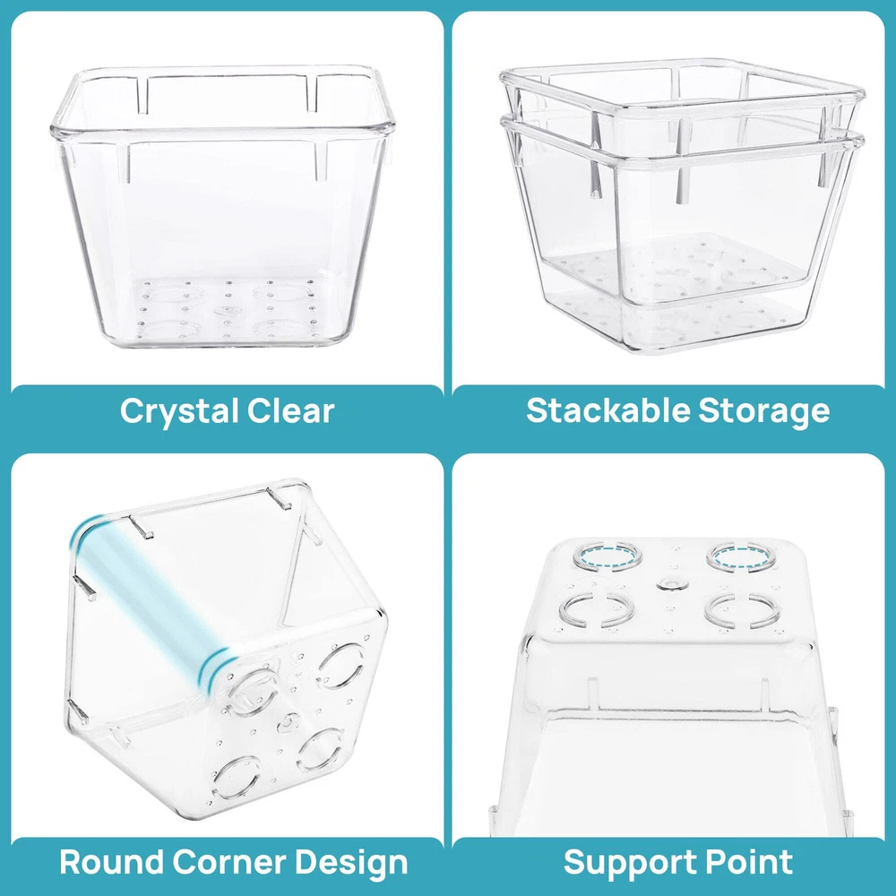 【Make Everything Organized】These clear versatile drawer dividers trays are perfect for any place in your home. Fit all kinds of drawers, such as vanity / bathroom / kitchen / office drawers/ craft room, ideal for organizing cosmetics, makeup tools, hair accessories, jewelry, pins, office supply, craft supplies, utensils, etc. 【Combination of 4 Different Sizes】set includes 15pcs storage bins in 4 different sizes, which help you customize combinations to items and organize drawer in shelf/ closet/ cabinet/ dresser . Includes: 9 x 6 x 2 inches (1pcs), 9 x 3x 2 inches(2pcs), 6 x 3 x 2 inches(6pcs), 3 x 3 x 2 inches(6cps). 【Non-Slip and Durable】Extra 100pcs silicone pads are included, just stick them on the bottom of the plastic trays for non-slip. Made of durable and clear plastic, so you can see what’s in it without digging around or making a mess, help you get a neat lifestyle. 【Stackable Storage】The drawer bins can be stacked into other when you not use them, that will save much space and organize well. You will find it's so easy to keep things neat and tidy. 【Easy to Clean】Our desk drawer storage bins are easy to be wiped clean with a damp cloth and perfect for keeping everything in its place. Convenient for use in your daily life, make everything look beautiful and better organized.