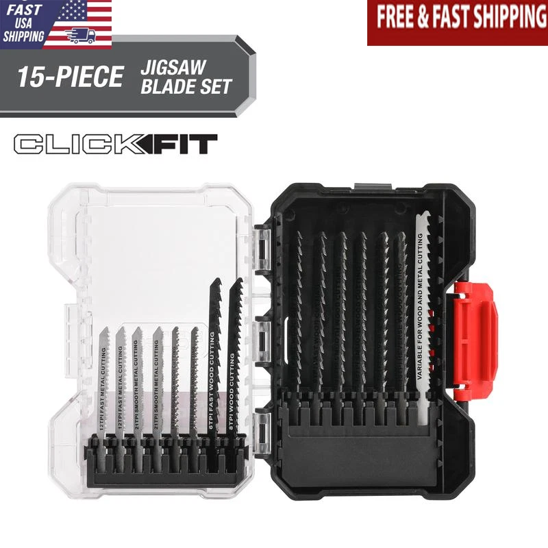 Aquatic Turtle Trail Mix Diet Floating Food Protein Rich Shrimp Mealworms 3oz 7.75 USD Free shipping Magnetic Dash Mount Phone Holder Strong Magnets 360 Rotation One-Hand Use New 8.56 USD Free shipping Animal Crackers Bear Jug 24 oz Crunchy Snack Reusable Container Fun Treat New 8.96 USD Free shipping Microfiber Coral Fleece Towels 8 Pack Multi-Purpose Soft Absorbent Cleaning New 9.1 USD Free shipping Smart LED Bulb Dimmable RGBW Energy Efficient Voice Control 800 Lumens New 9.11 USD Free shipping Cheese Puffs Snack Chips Party Size Deliciously Cheesy Texture Perfect Sharing 9.21 USD Free shipping Protein Bars Chocolate Salted Caramel 15g Protein 1g Sugar 3g Net Carbs 4 Count 9.27 USD Free shipping Onion Ring Flavored Snack Chips Pantry Personal Snacks 10 Count Multipack New 9.27 USD Free shipping Organic Energy Bars Chocolate Chip Non-GMO Plant Based 10g Protein 5 Pack New 9.89 USD Free shipping Organic Peanut Butter Energy Bars Non-GMO Plant Based Protein Snacks 5 Pack New 9.89 USD Free shipping Variety Pack Cheese Crackers Baked Snack On-the-Go Delicious Crunchy 12 Count 10.04 USD Free shipping Strawberry Cream Protein Bar 13g Protein 5g Sugar Wafer Energy Snack 5 Count New 10.34 USD Free shipping To outfit your Jig Saw, the new 15 Piece Jig Saw Blade Set For wood and metal is a great place to start. These are high quality blades for cutting wood, metal, and other materials. The T- Shank blades also fit all major branded jig saws. The 15 piece set includes two, 10 teeth per inch ( T101BR ) wood cutting; two, 10 TPI ( T101B ) wood cutting; two 6 TPI, (T101D ) wood cutting; one, 8 TPI, (T111C ) wood cutting; one, 6 TPI (T144D ) wood cutting; two, 18 TPI ( T101AO ) wood cutting; two, 21 TPI ( T118A ) metal cutting; two, 12 TPI ( T118B ) metal cutting and one 5-10 TPI (T345XF ) metal cutting blades. The wood cutting blade material is 65 MN for durability and cutting feet. The Metal cutting blades are Bi-metal material. The jig saw blade set also comes in a reusable plastic storage case. The 15 Piece Jigsaw blades are high quality blades for cutting wood, metal, and other materials. The T-Shank blades also fit most major branded jig saws. High-Carbon Steel Blades for use with Sheet Metal, rough-cutting wood and find scroll work. High-Carbon Steel Blades for Use with Sheet Metal, Rough-Cutting Wood, and Fine Scroll Work SET INCLUDES: 2 - High Precision Wood Cutting Blades, Length 100 mm, Material: 65 MN, 10 TPI, T101BR 2 - High Precision Wood Cutting Blades, Length 100 mm, Material: 65 MN, 10 TPI, T101B 2 - High Precision Wood Cutting Blades, Length 100 mm, Material: 65 MN, 6 TPI, T101D 1 - High Precision Wood Cutting Blade, Length 100 mm, Material: 65 MN, 8 TPI, T111C 1 - High Precision Wood Cutting Blade, Length 100 mm, Material: 65 MN, 6 TPI, T144D 2 - High Precision Wood Cutting Blades, Length 76 mm, Material: 65 MN, 18 TPI, T101A0 2 - Metal Cutting Blades, Length 76 mm, Material: Bi-metal, 21 TPI, T118A You may also like 8Qt Stainless Steel Stock Pot Metal Lid Perfect Soup Stews Pasta Cooking New 13.86 USD Free shipping Pumpkin Spice Coffee Pods K-Cup Light Roast Cinnamon Nutmeg Flavors 24 Count New 20.12 USD Free shipping Metal Hookboard W/ 4 Wooden Hooks Mail Pocket Key Organizer Easy Mounting New 15.45 USD Free shipping Cozy Faux Shearling Throw Blanket Soft Lightweight Sherpa For Indoor Outdoor Use 23.06 USD Free shipping Cheese Puffs Snack Chips Party Size Deliciously Cheesy Texture Perfect Sharing 9.21 USD Free shipping Microfiber Coral Fleece Towels 8 Pack Multi-Purpose Soft Absorbent Cleaning New 9.1 USD Free shipping Crunchy Creamy Cat Treats Salmon Flavor Dental Health 16oz Reclosable Container 9.8 USD Free shipping Small Pet Bed Cuddler Soft Washable Bolstered Comfort Supports Cats Dogs New 16.74 USD Free shipping 360 Degree Rearview Mirror Phone Mount Universal Rotatable Retractable Holder 15.31 USD Free shipping Variety Pack Cheese Crackers Baked Snack On-the-Go Delicious Crunchy 12 Count 10.04 USD Free shipping Medium Roast Original Ground Coffee 30.6oz Canister Smooth Flavor Kosher Brew 23.09 USD Free shipping Dry Dog Food Natural Chicken Veggies Healthy Digestion Omega3 Whole Health 14lb 35.31 USD Free shipping