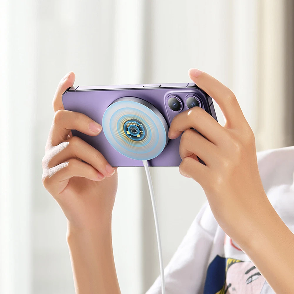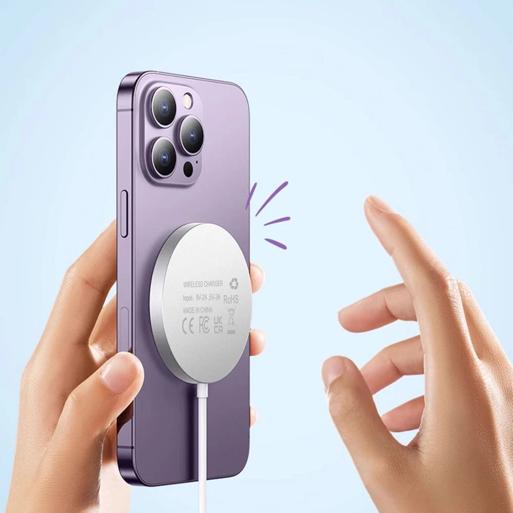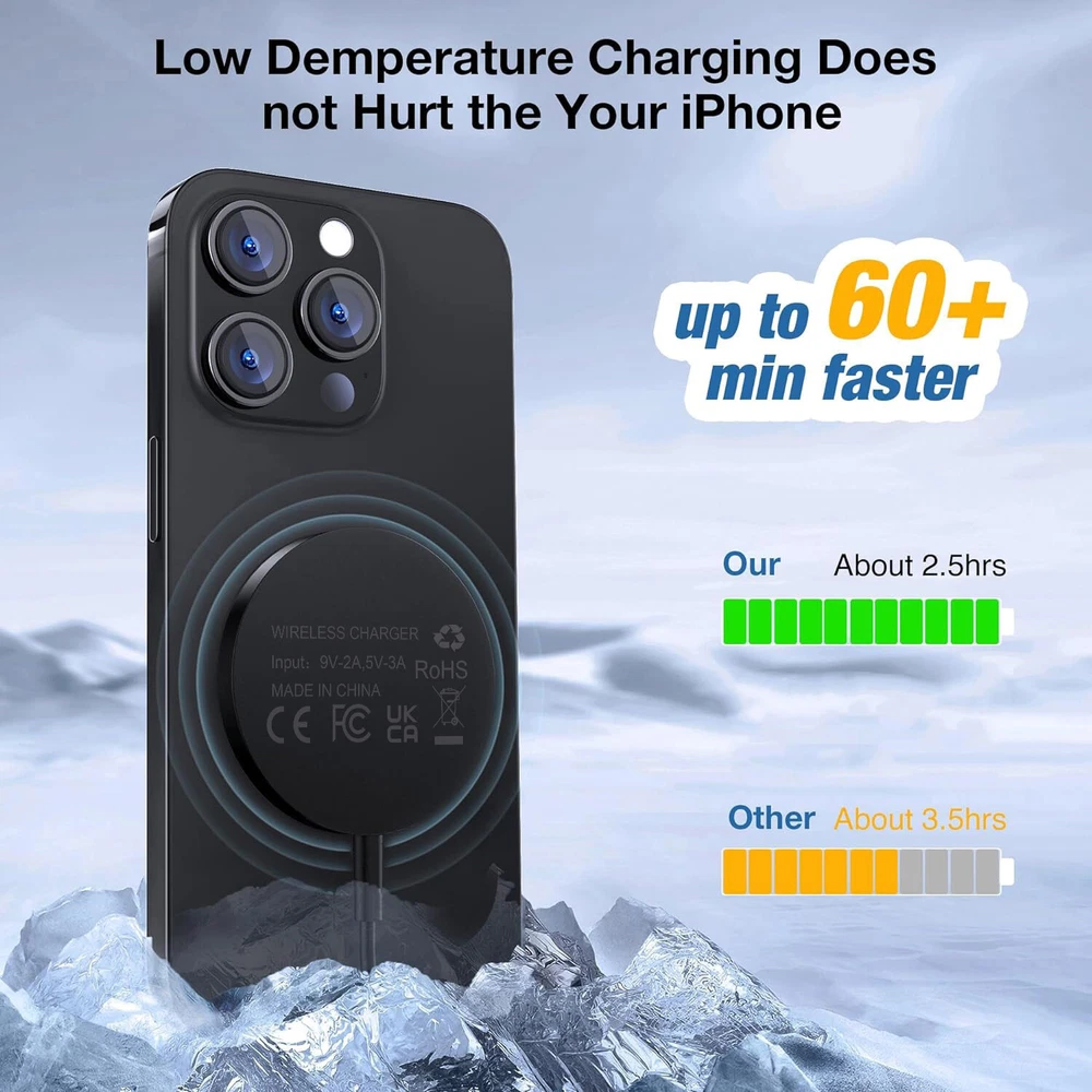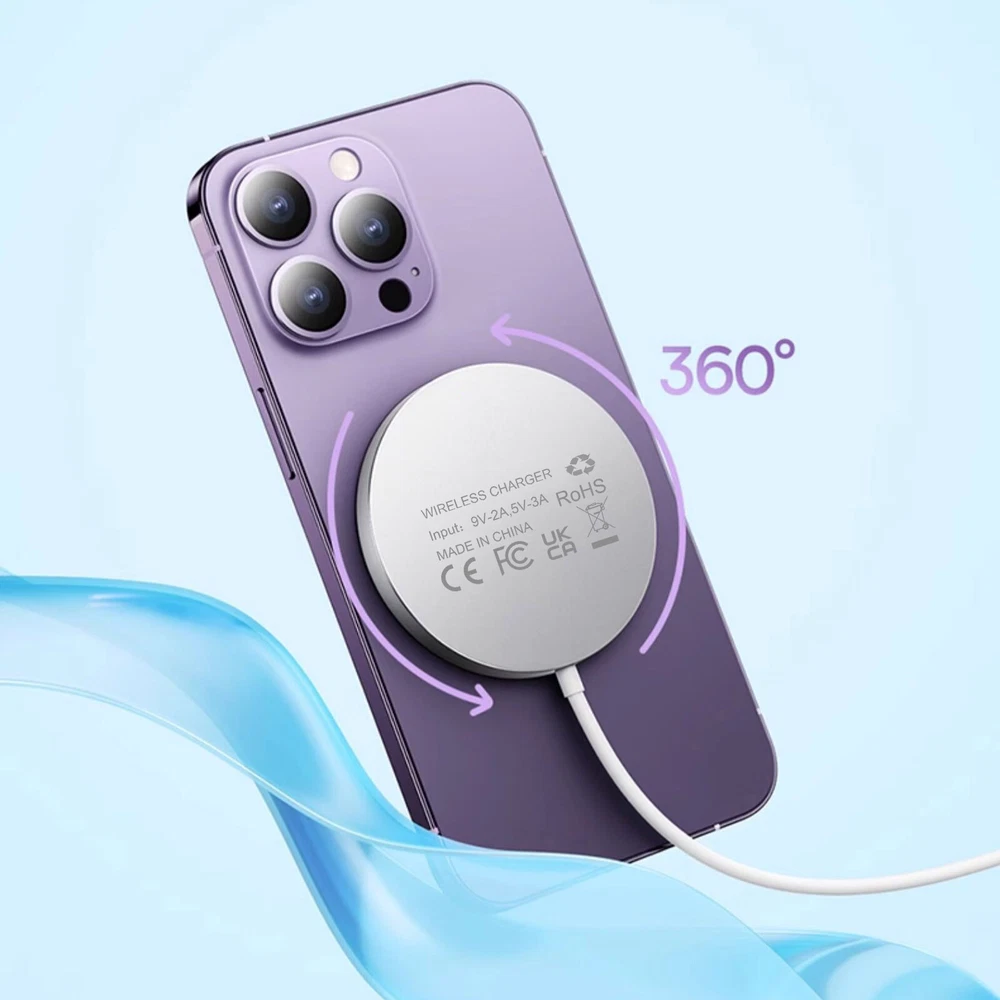 This magnetic wireless charger is a game-changer! It snaps perfectly onto my iPhone and charges super fast without any fuss. The strong magnet keeps it securely in place, so I can still use my phone while it powers up. No more dealing with tangled cables—just drop it on the pad and it works like magic. Super convenient and worth every penny!