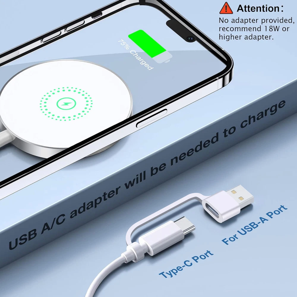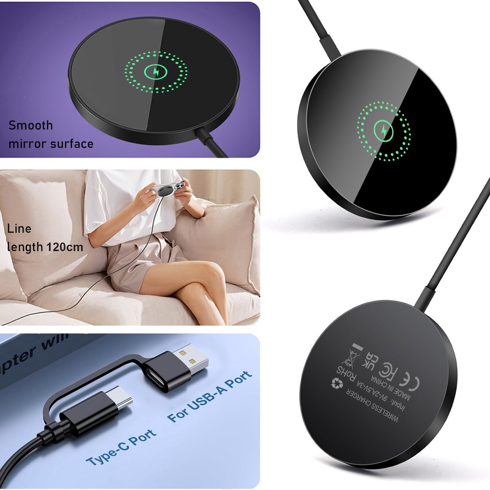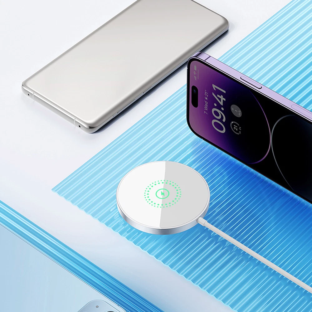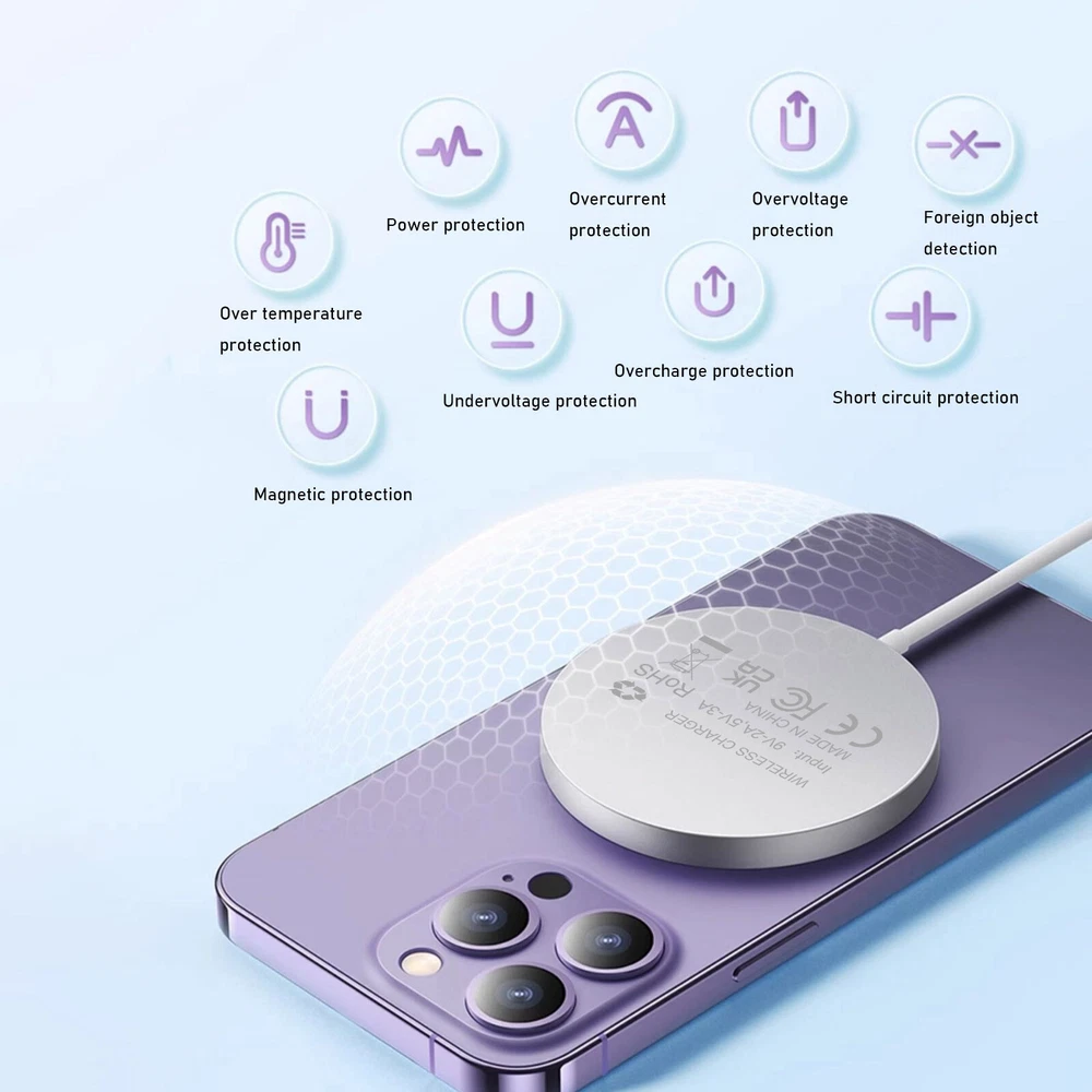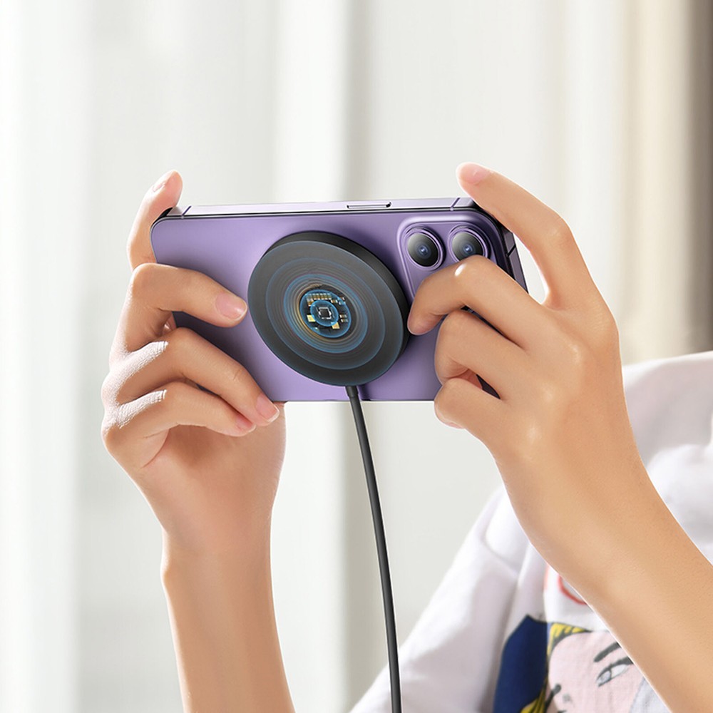 This magnetic wireless charger is a game-changer! It snaps perfectly onto my iPhone and charges super fast without any fuss. The strong magnet keeps it securely in place, so I can still use my phone while it powers up. No more dealing with tangled cables—just drop it on the pad and it works like magic. Super convenient and worth every penny!