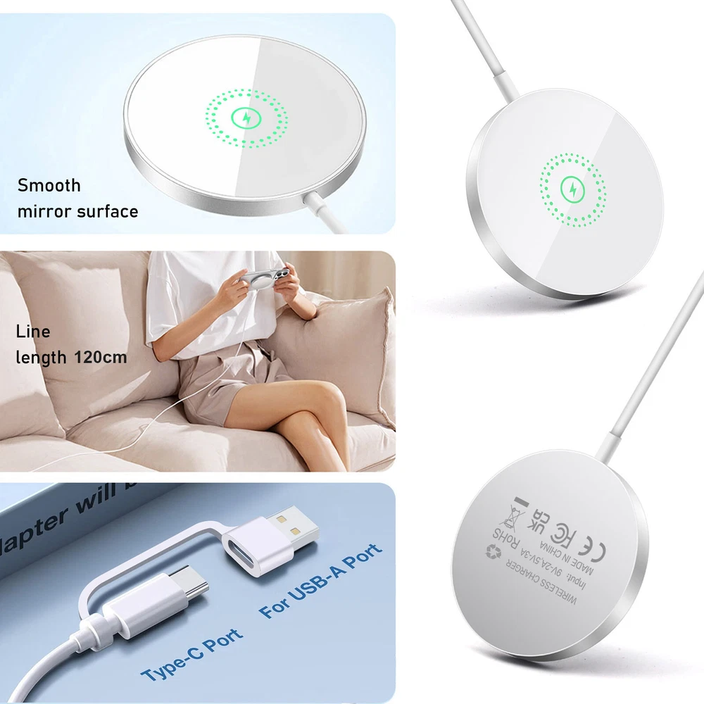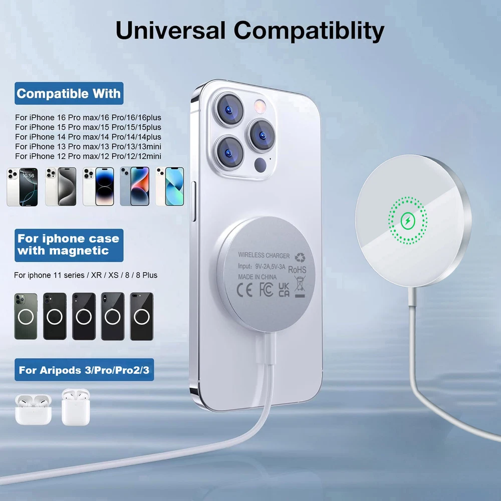 15W Magnetic Wireless Charger for iPhone 16 Pro Max 15 14 13 12 mini Fast Charging Pad